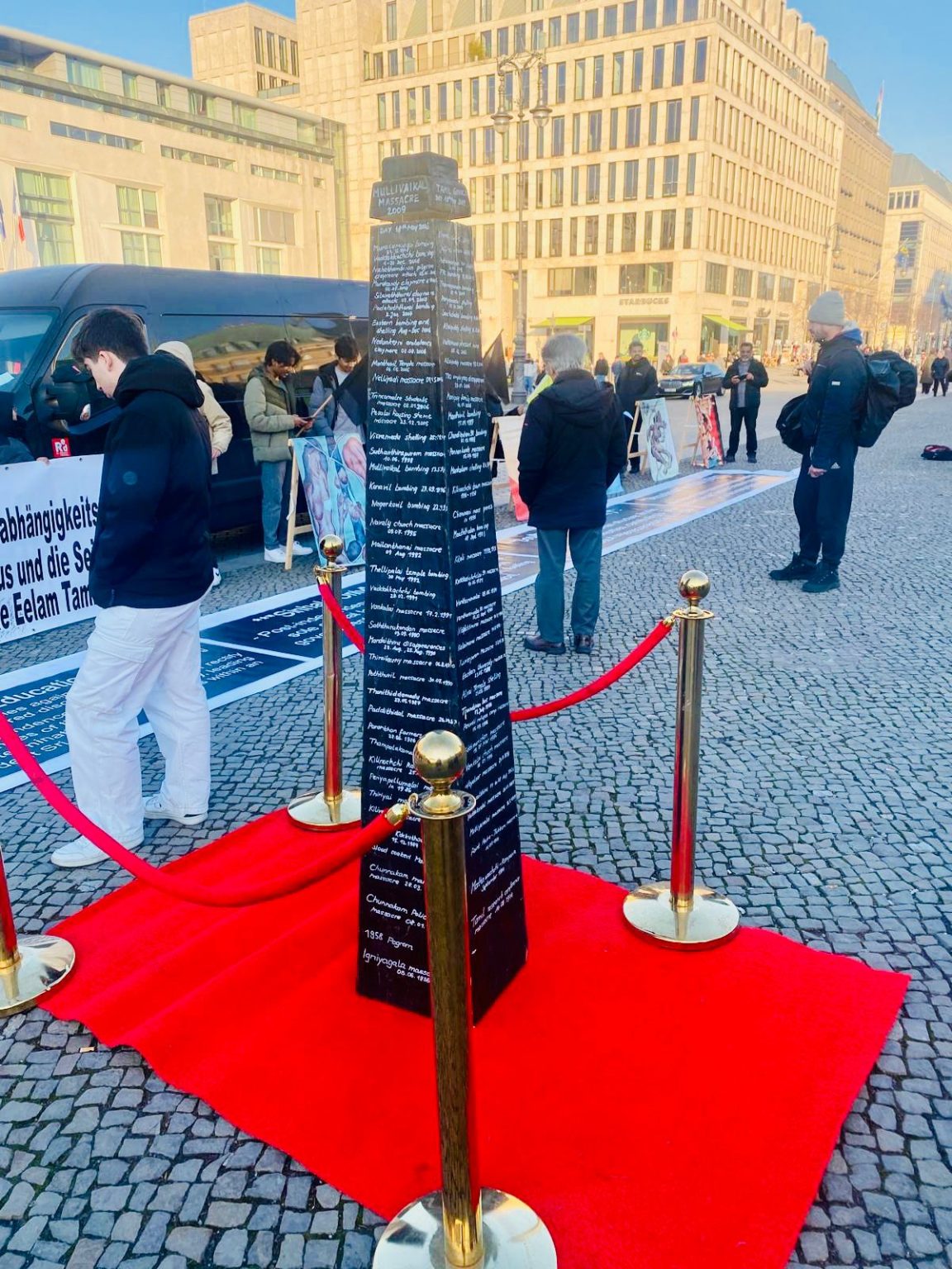 யேர்மன் தலைநகரத்தில் பிரசித்திபெற்ற Brandenburger Tor வளாகத்தில் வேற்றின மக்களுக்கு தமிழின அழிப்பை எடுத்துரைக்கும் முகமாக ஓவியர் புகழேந்தி ஐயாவின் தமிழின கண்காட்சி சிறப்பாக ஒழுங்குசெய்யப்பட்டது.