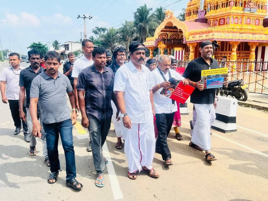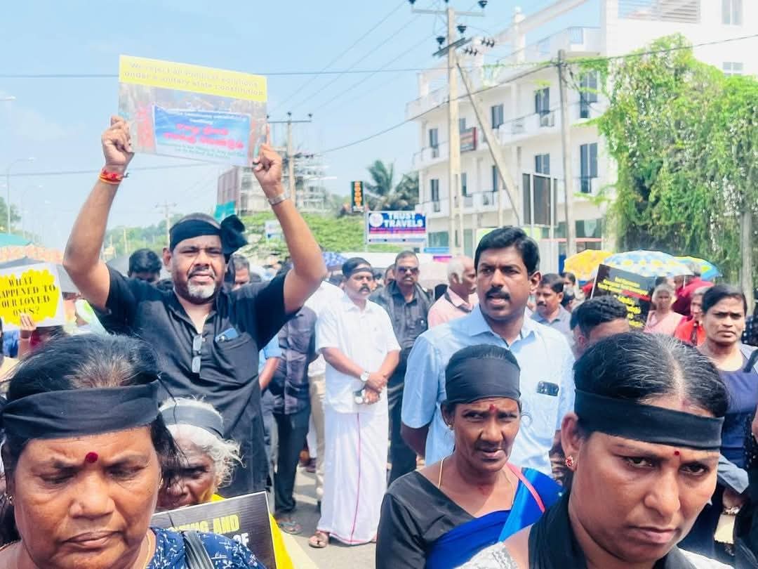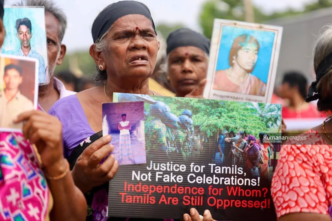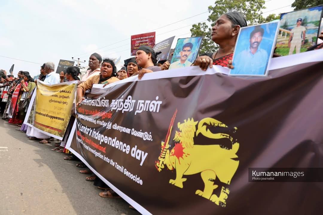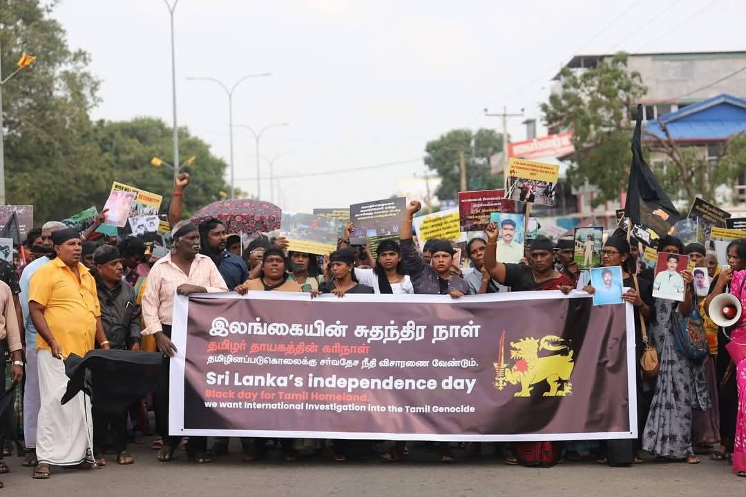 இலங்கயின் சுதந்திரநாள் ஆன இன்று (04.02.2025) “தமிழர் தாயகத்தின் கரிநாள்” என பிரகடனப்படுத்தி வடக்கு – கிழக்கு காணாமல் ஆக்கப்பட்டோர் சங்கத்தின் ஏற்பாட்டில் தமிழினப் படுகொலைக்கு நீதி கோரியும், காணாமல் ஆக்கப்பட்டோருக்கான நீதி கோரியும், அரசியல் கைதிகள் விடுவிக்கப்பட வேண்டும் எனவும் கிளிநொச்சியில் மாபெரும் இக்கறுப்புகொடி போராட்டம் நடைபெற்றது.
