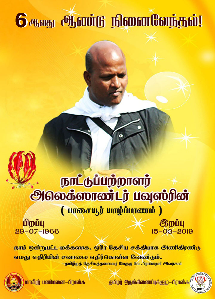 சிறப்பு செய்திகள்புலத்துச்செய்திகள் நாட்டுப்பற்றாளர் பவுஸ்ரின் அவர்களின் 6ஆம் ஆண்டு நினைவேந்தல் நாள் ! By ஊடகன் - March 14, 2025 0 256 பிரான்சில் 15.03.2019 அன்று திடீர் சுகயீனம் காரணமாக சாவடைந்த நாட்டுப்பற்றாளர் அலெக்ஸாண்டர் பவுஸ்ரின் அவர்களின் 6ஆம் ஆண்டு நினைவேந்தல் நாள் நாளை 15.03.2025 சனிக்கிழமை ஆகும்.