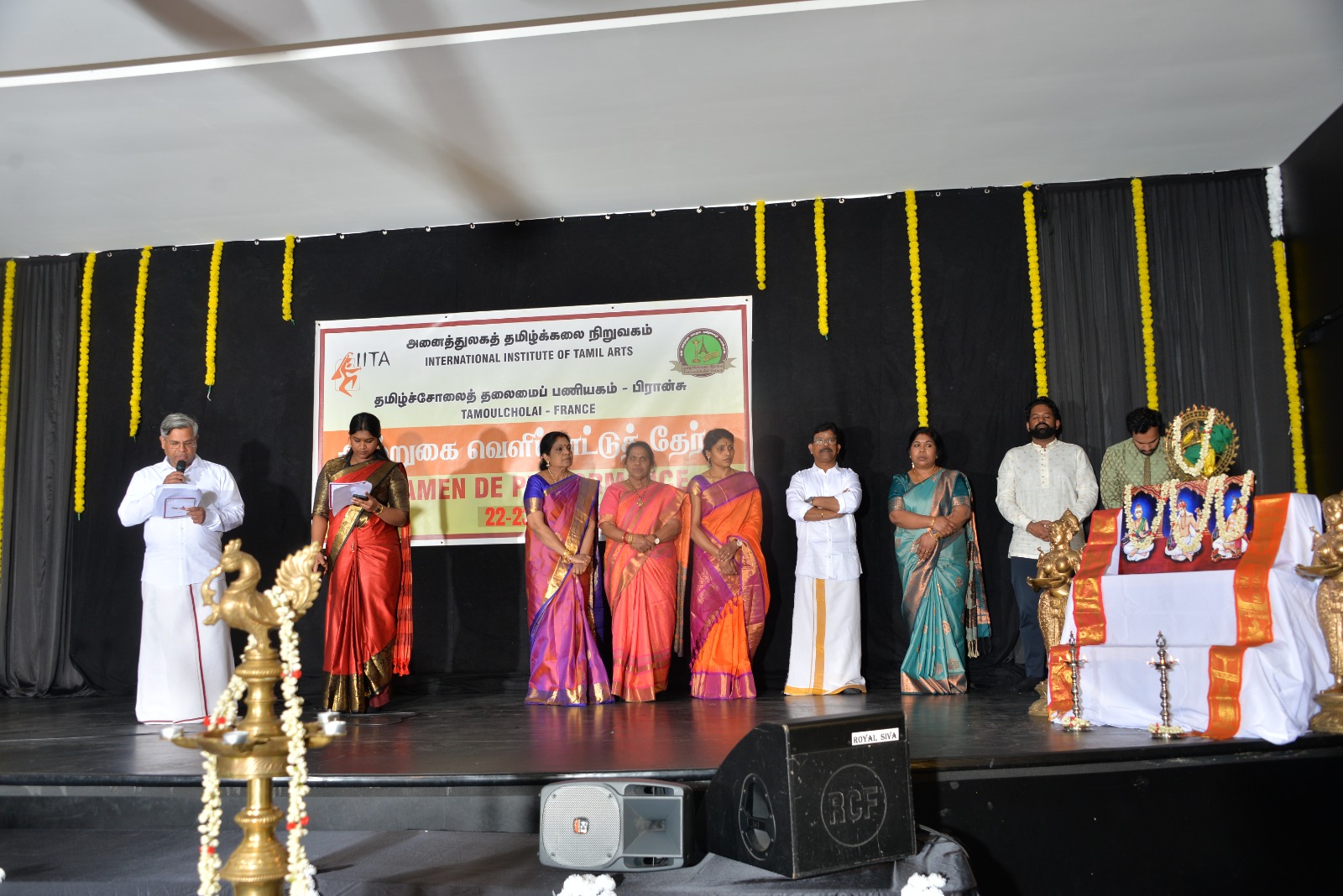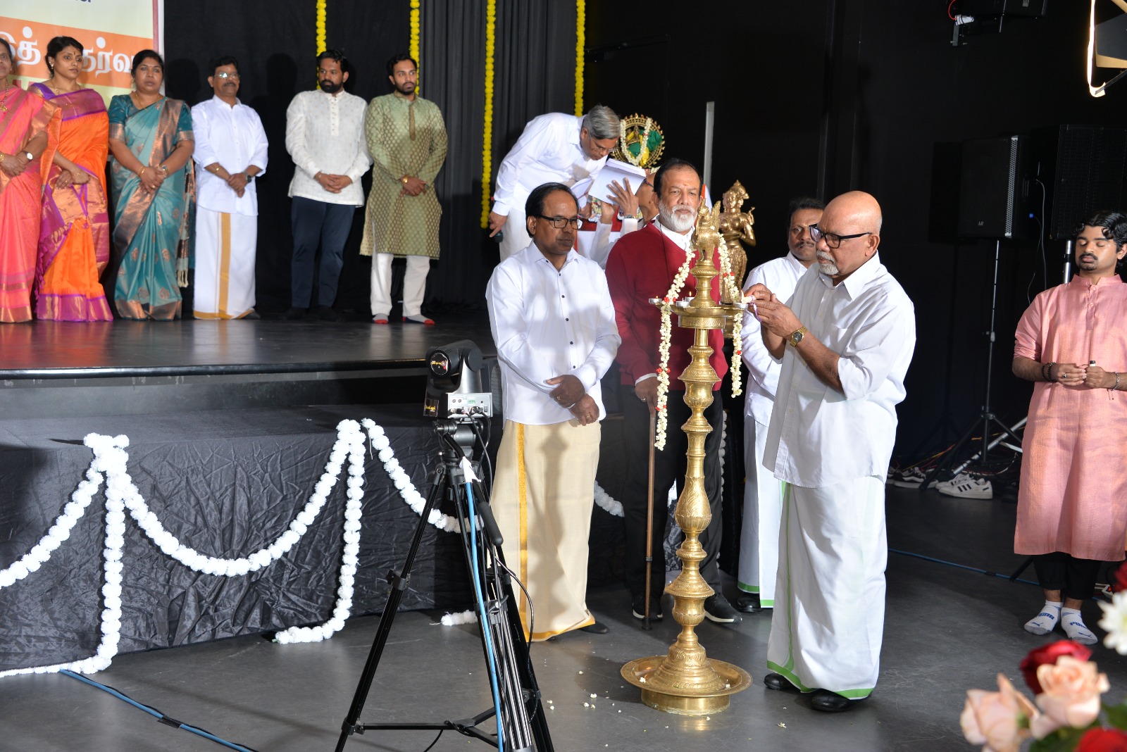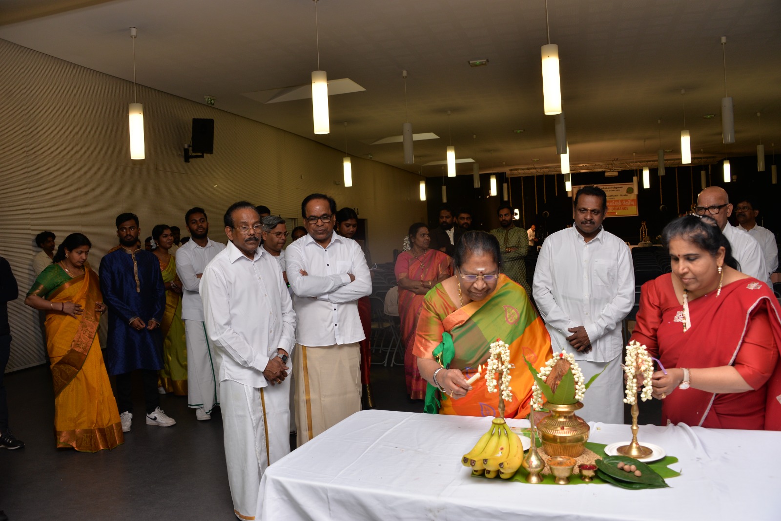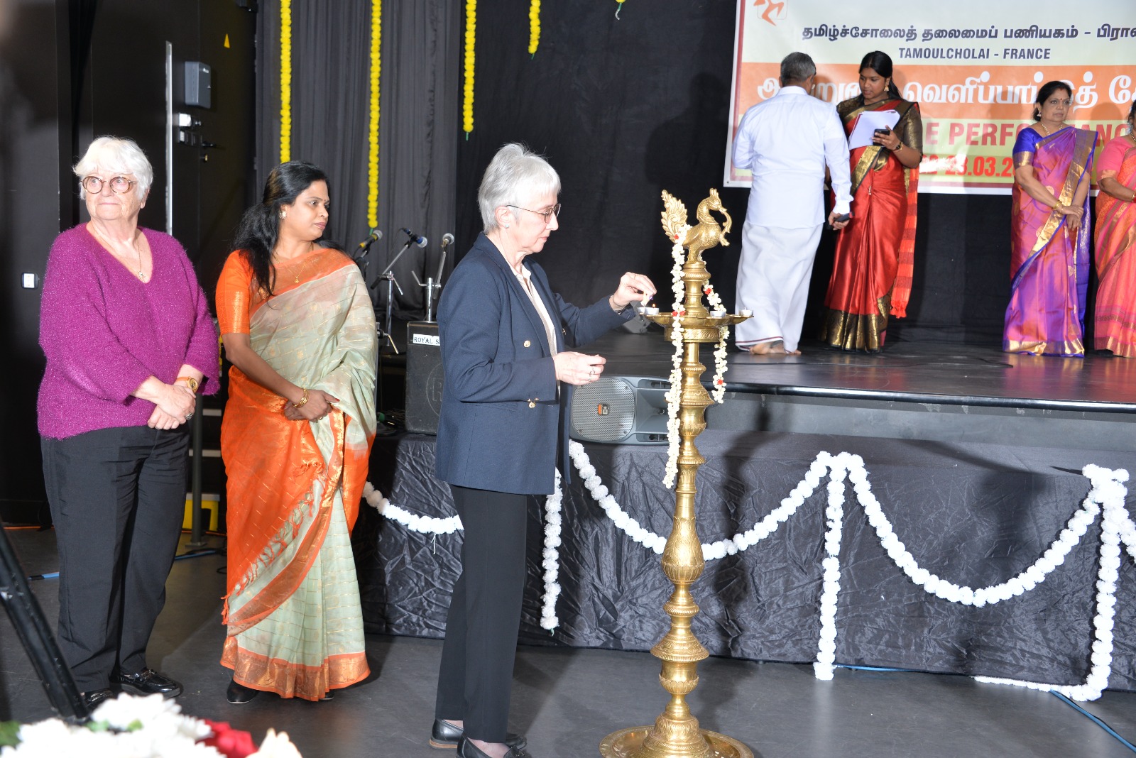 திருவாட்டி ஆனந்தராஜா கௌசலா, திருமிகு கணேசசுந்தரம் கண்ணதாஸ், திருமிகு கனகசபாபதி சேயோன் திருவாட்டி தில்லைரூபன் மோகனரூபி, திருவாட்டி சிவானந்தராஜா சிறீகாந்தரூபி ஆகிய கலையாசியர்கள் ஏற்றி வைத்தனர்.மங்கல விளக்கினை தமிழர் ஒருங்கிணைப்புக்குழு பரப்புரைப் பொறுப்பாளர் திருமிகு மேத்தா , தமிழ்ச்சங்கங்களின் கூட்டமைப்பின் செயலாளர் திருவாட்டி சுபத்திரா அமலகுமார், தமிழ்ச்சோலை தலைமைப் பணியகப் பொறுப்பாளர் திருமிகு நாகயோதீஸ்வரன், செயலாளர் திருமிகு காணிக்கைநாதன்,பொருளாளர் திருமிகு பேரின்பமூர்த்தி மற்றும் 95 மாவட்ட விளையாட்டு கழக பொறுப்பாளர் திருமிகு ரமேஷ்,கார்ஜ் லே கோணேஸ் நகரசபையில் இருந்து சிறப்பு விருந்தினர்களாக வருகை தந்திருந்த திருவாட்டிகள் Claude Lalliaud,Gisele Frey, Adi Sadasivam, Berard Gunot ஆகியோர் ஏற்றிவைத்தனர் .
