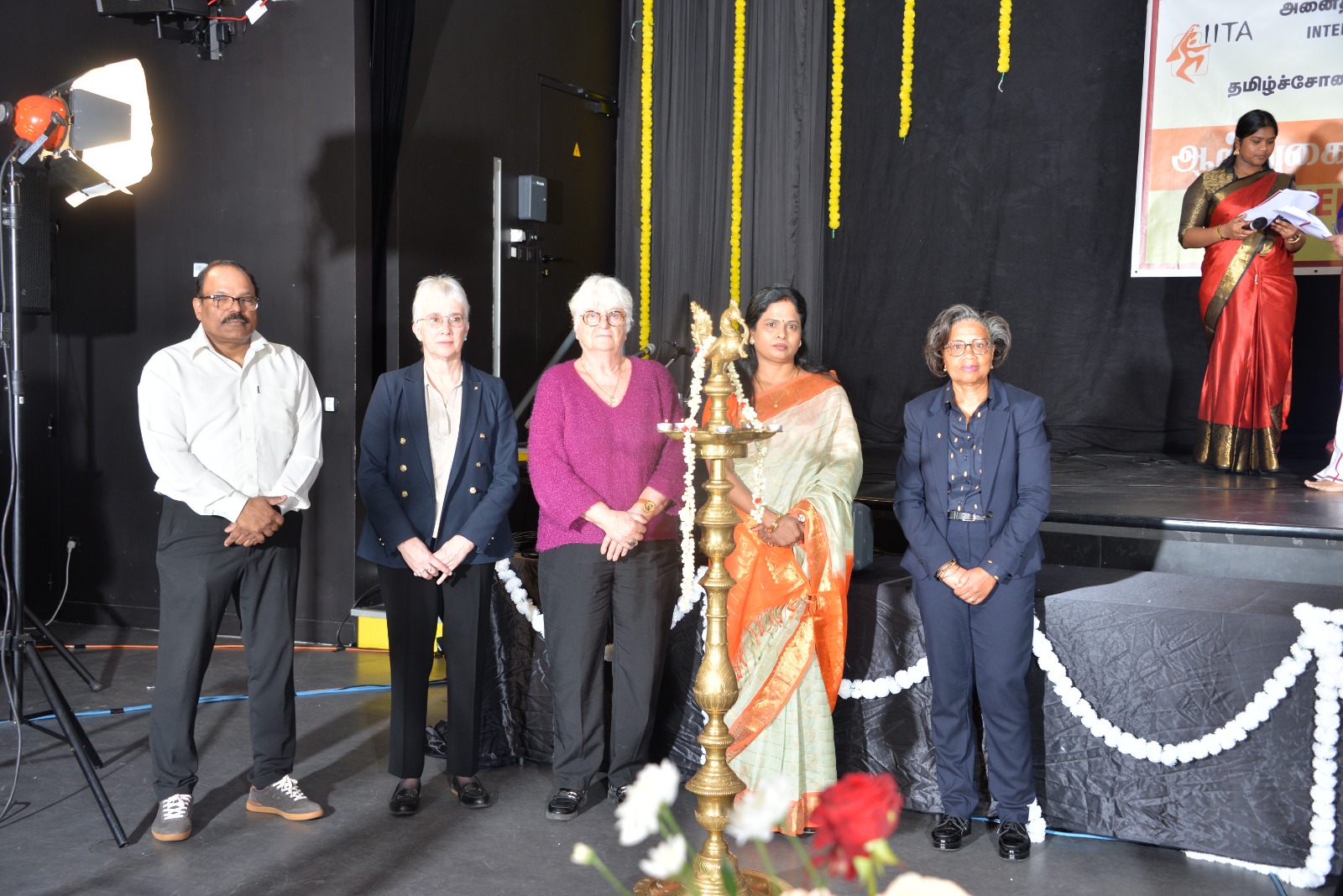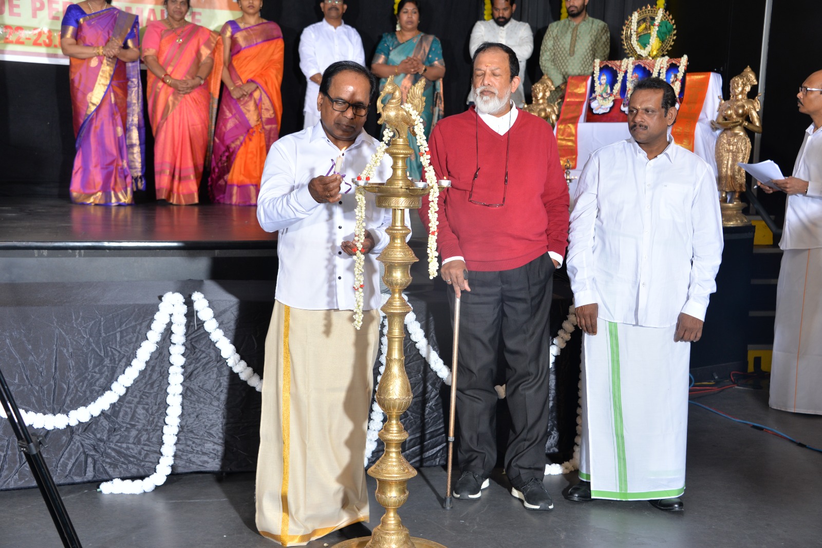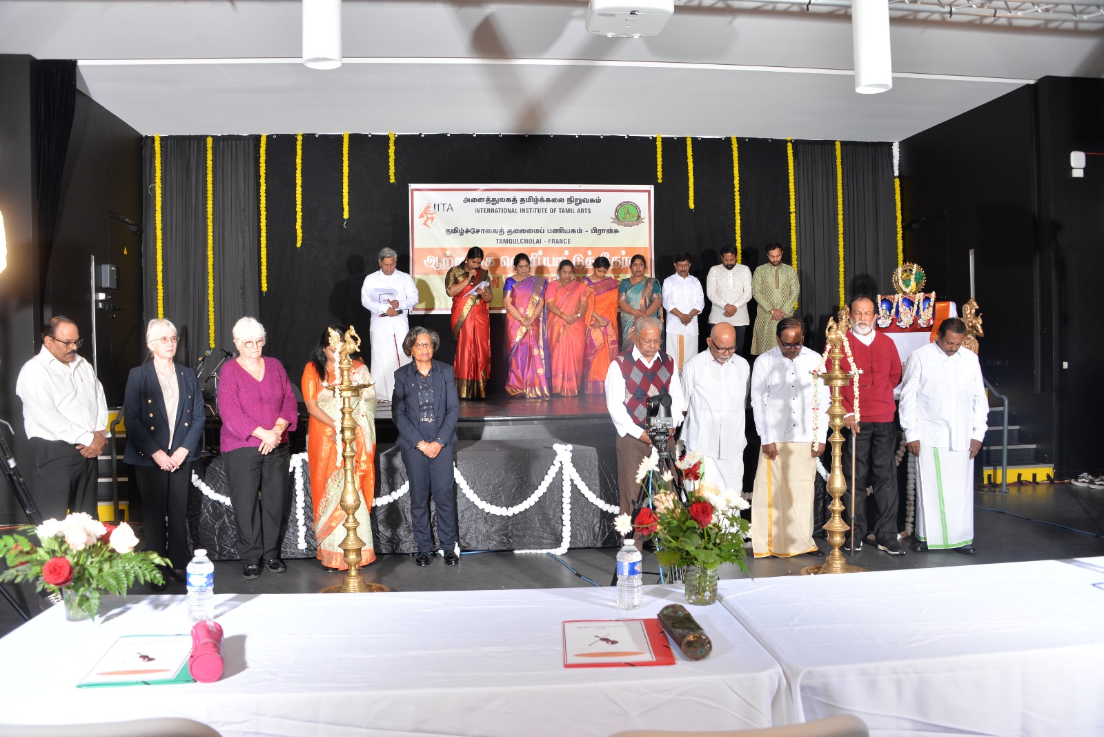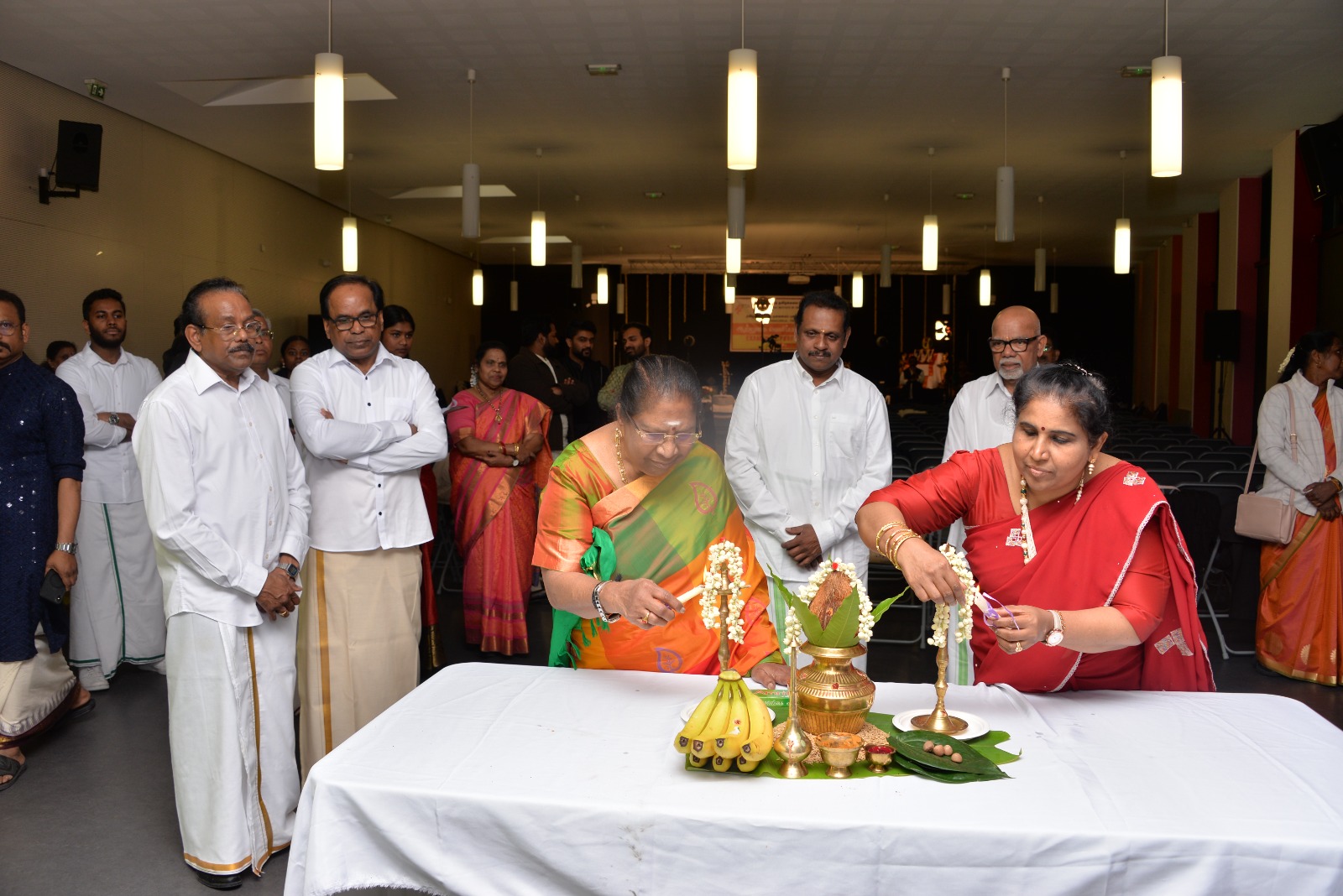 திருவாட்டி ஆனந்தராஜா கௌசலா, திருமிகு கணேசசுந்தரம் கண்ணதாஸ், திருமிகு கனகசபாபதி சேயோன் திருவாட்டி தில்லைரூபன் மோகனரூபி, திருவாட்டி சிவானந்தராஜா சிறீகாந்தரூபி ஆகிய கலையாசியர்கள் ஏற்றி வைத்தனர்.மங்கல விளக்கினை தமிழர் ஒருங்கிணைப்புக்குழு பரப்புரைப் பொறுப்பாளர் திருமிகு மேத்தா , தமிழ்ச்சங்கங்களின் கூட்டமைப்பின் செயலாளர் திருவாட்டி சுபத்திரா அமலகுமார், தமிழ்ச்சோலை தலைமைப் பணியகப் பொறுப்பாளர் திருமிகு நாகயோதீஸ்வரன், செயலாளர் திருமிகு காணிக்கைநாதன்,பொருளாளர் திருமிகு பேரின்பமூர்த்தி மற்றும் 95 மாவட்ட விளையாட்டு கழக பொறுப்பாளர் திருமிகு ரமேஷ்,கார்ஜ் லே கோணேஸ் நகரசபையில் இருந்து சிறப்பு விருந்தினர்களாக வருகை தந்திருந்த திருவாட்டிகள் Claude Lalliaud,Gisele Frey, Adi Sadasivam, Berard Gunot ஆகியோர் ஏற்றிவைத்தனர் .