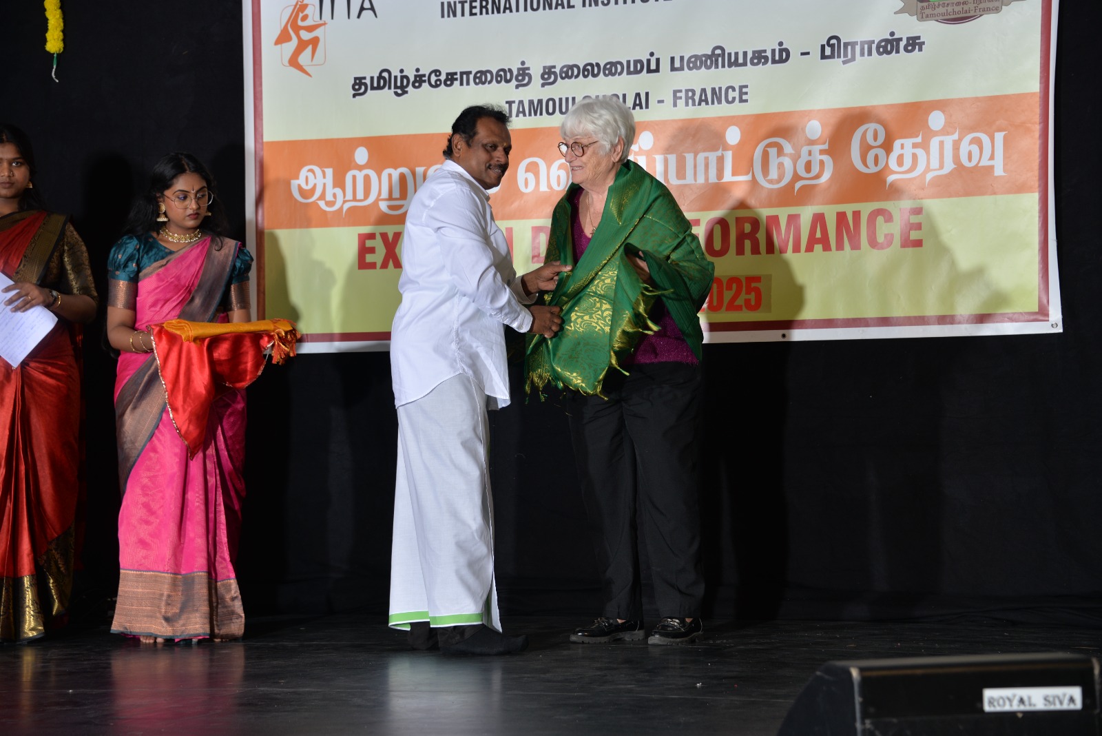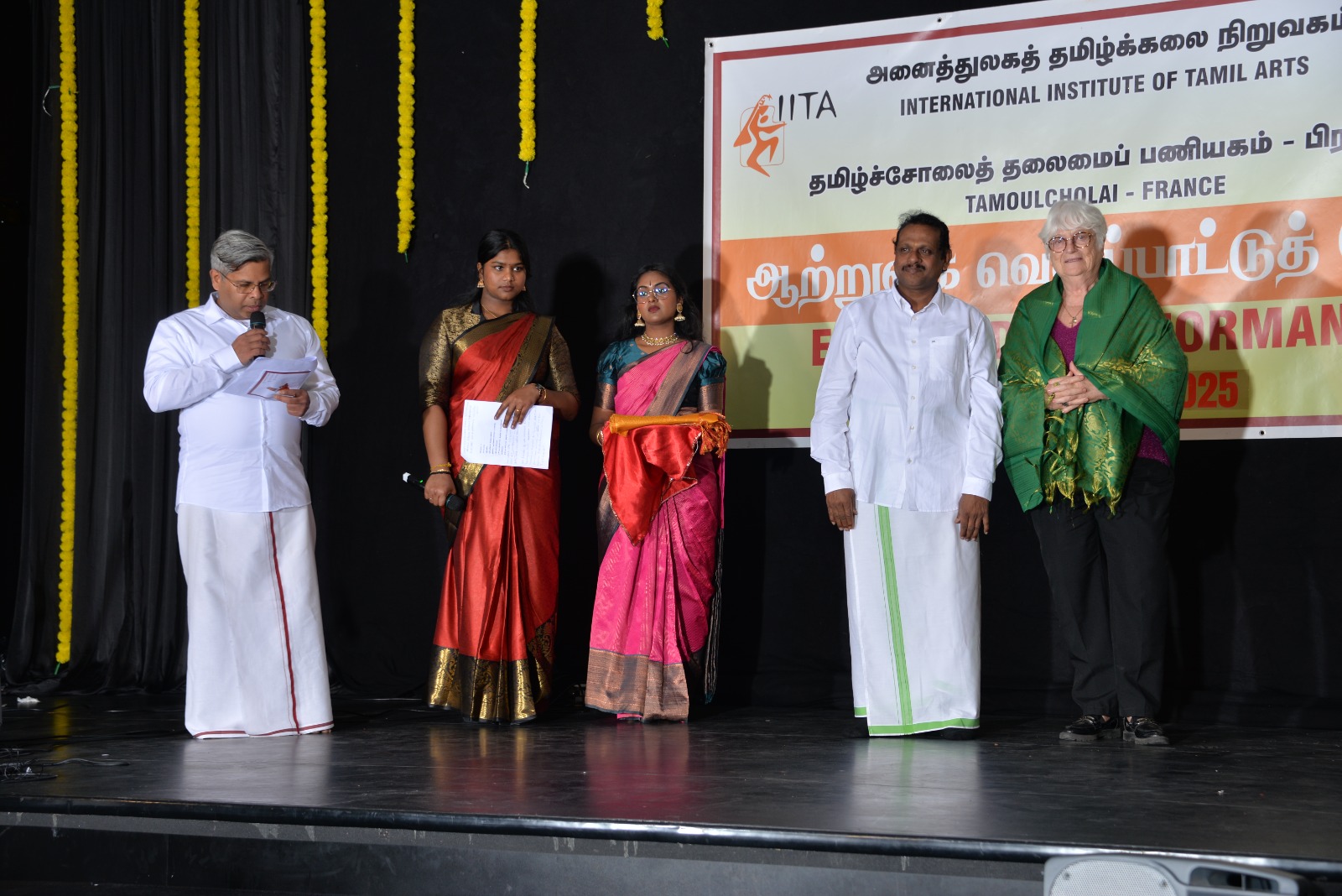 அவர்களைத் தொடர்ந்து திரான்சி தமிழ்ச்சோலை ஆசிரியை திருவாட்டி செல்வராஜ் றொனி அவர்களின் மாணவிகளான செல்வி திலீப்குமார் திசானிகா செல்வி கோகுலதாஸ் வித்தியா செல்வி திலீப்குமார் தானுகா ஆகியோர் வழங்கியிருந்தனர்.