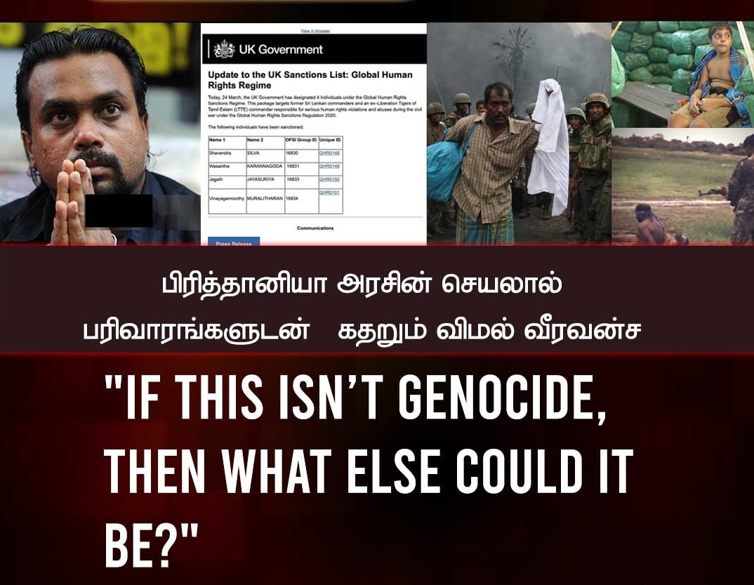 இந்நிலையில் பேரினவாத சிங்கள அரசு நடத்திய திட்டமிட்ட தமிழின அழிப்பிற்கு எதிராக பிரித்தானியா அரசு தடை விதித்துள்ளமை தொடர்பில் சிங்களபேரினவாதி விமல் வீரவங்ச பிரித்தானிய உயர்ஸ்தானிகரகம் அருகில் தனது பரிவாரங்களுடன் இன்று (31.03.2025) போராட்டம் என்கின்ற பெயரில் கதறிய சம்பவம் ஒன்று நடந்துள்ளது.