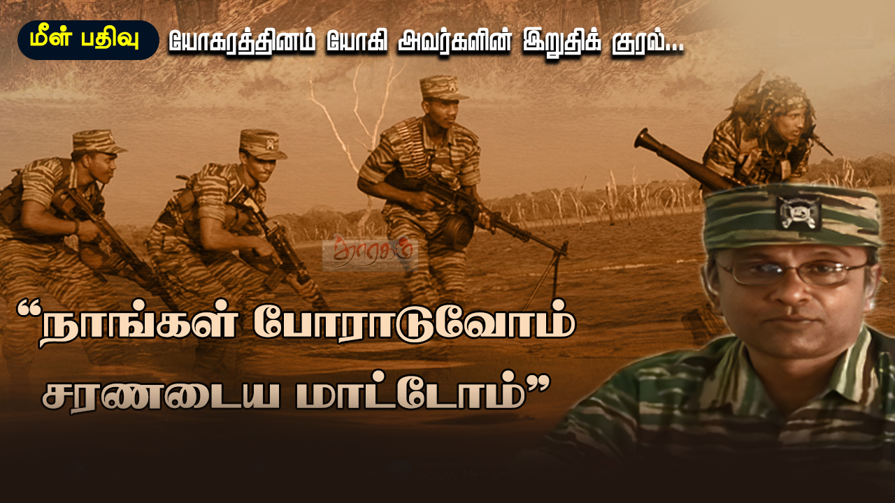 போரின் இறுதி நாட்களில் (மே மாதம் 2009) முள்ளிவாய்க்காலில் தமிழீழ விடுதலைப் புலிகளின் சமர் ஆய்வுப் பிரிவுப் பொறுப்பாளர் திரு.யோ.செ.யோகி அவர்கள் ஆற்றிய அவரது இறுதி உரையை எழுத்து வடிவில் தரப்பட்டுள்ளது. ( சரியாக எந்த நாளில் உரையாற்றினார் என்பதை உறுதிப்படுத்திவிட்டு பின்னர் தாரகம் தமிழ்த் ஊடகத்தில் இணைக்கப்படும்). அவரது உரையின் முழுமையான வடிவம்:
