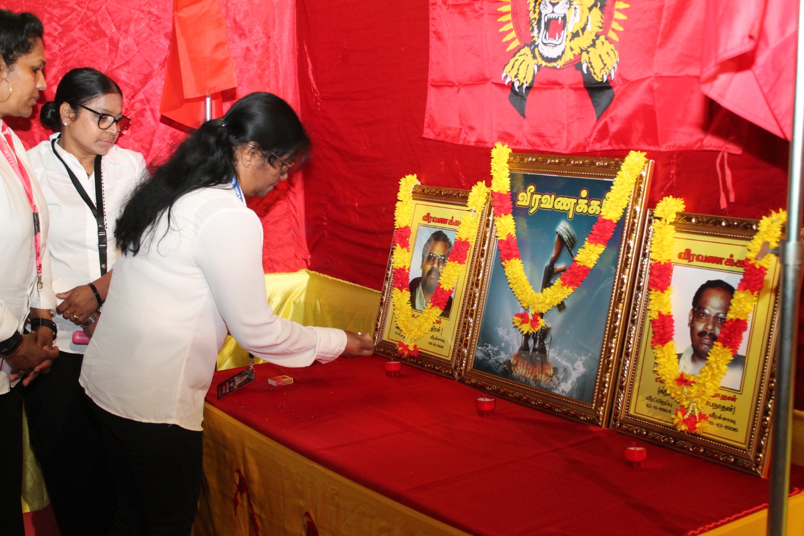 காலை சரியாக 9:30 மணிக்கு பொதுச்சுடரினை தமிழர் ஒருங்கிணைப்புக்குழுவின் செயற்பாட்டாளர் செல்வன் திவாகர் ஏற்றி வைக்க தமிழீழத்தேசியக்கொடியை அரசியல் துறைப்பொறுப்பாளர் செல்வி. நிதுசா சதீசுவரன் அவர்கள் ஏற்றி வைத்திருந்தார்.