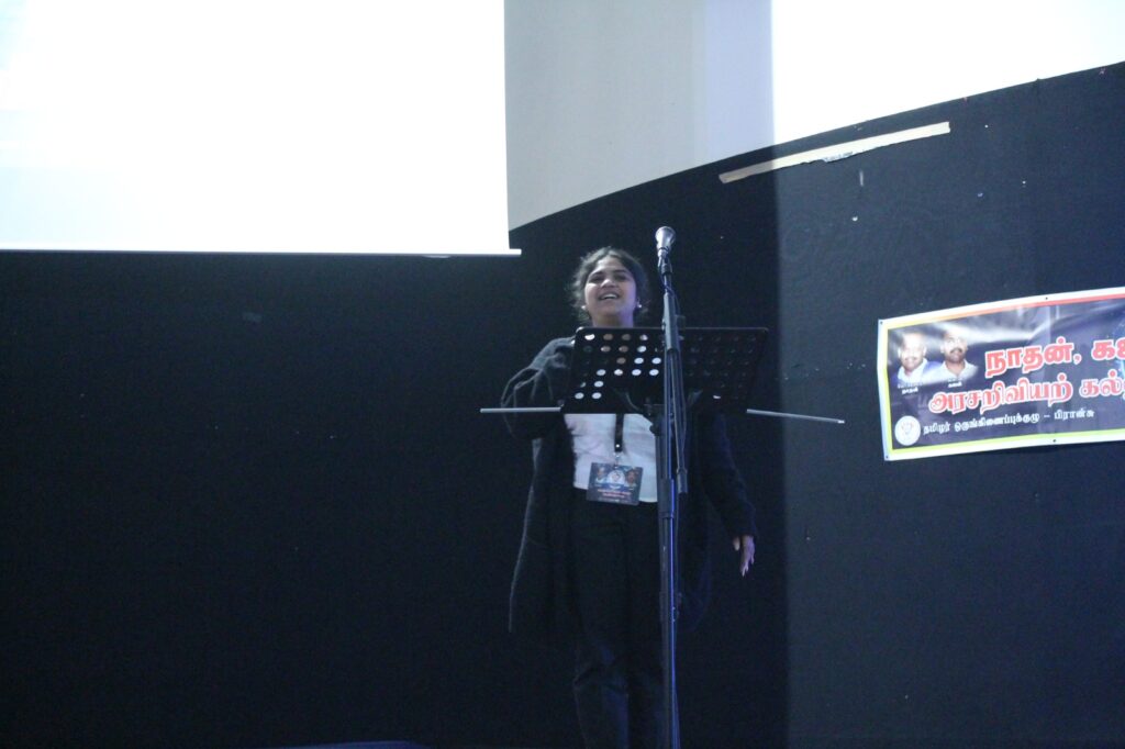 அதன் காத்திரமான செயற்பாடாக மூத்தவர், நடுத்தர வயதுடையவர், இளையவர் என மூவரை இன்றைய பட்டறை நிகழ்வை வைத்து குறிப்பிட்ட சில நிமிடங்களுக்குள் வழிநடத்திக்காட்டும் படி கேட்டிருந்தார். எதிர்பாராத நிலையிலும் அவர்களும் அதனை சிறப்பாகச சசெய்து காட்டியிருந்தமை முத்தாய்ப்பாய் அமைந்திருந்தது குறிப்பிடத்தக்கது. நிகழ்வின் இறுதியில் தமிழீழத் தேசியத் தலைவரின் சிந்தனைகளும், தேசம் நோக்கிய செயற்பாடுகள் பற்றியும் து. மேத்தா அவர்கள் வழங்கியதுடன் நம்புங்கள் தமிழீழம் பாடலுடன், தேசியக்கொடி கையேந்தலுடன் தமிழரின் தாகம் தமிழீழத்தாயகம் என்ற தாரக மந்திரத்துடன் அரசறிவியற் கல்லூரி ஆரம்ப நிகழ்வும், செயலமர்வும் 4.00 மணிக்கு நிறைவு பெற்றது. இன்றைய செயலமர்வு மட்டுப்படுத்தப்பட்டதொரு பட்டறையாக அமைந்திருந்தது. கலந்துகொண்ட அனைத்துச் செயற்பாட்டாளர்கள் மத்தியில் ஒரு புத்துணர்ச்சியைத் தந்திருப்பதை அவர்களிடமிருந்து அறியக்கூடியதாக இருந்தது.