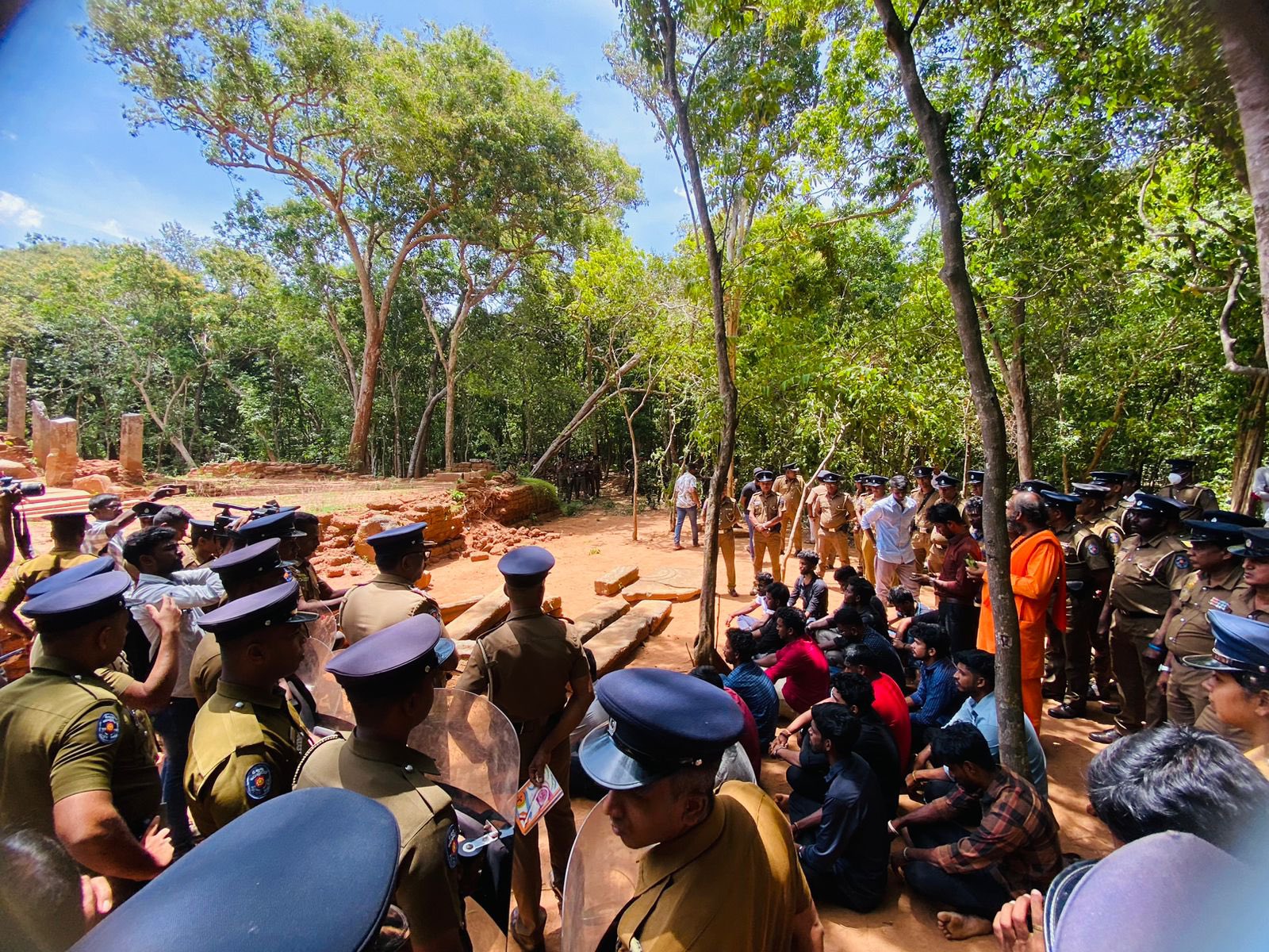 இதன்போது அவ்விடத்துக்கு வருகை தந்த குருந்தூர்மலை பௌத்த பிக்கு கல்கமுவ சாந்தபோதி மற்றும் தொல்லியல் திணைக்களத்தினர், காவல்துறையினர் இணைந்து விவசாய நடவடிக்கைகளை தடுத்ததோடு விவசாய நடவடிக்கையில் ஈடுபட்டிருந்த விவசாயிகளை கைதுசெய்து உழவியந்திரத்தினையும் முல்லைத்தீவு காவல்துறை நிலையத்துக்கு கொண்டு சென்றுள்ளனர்.