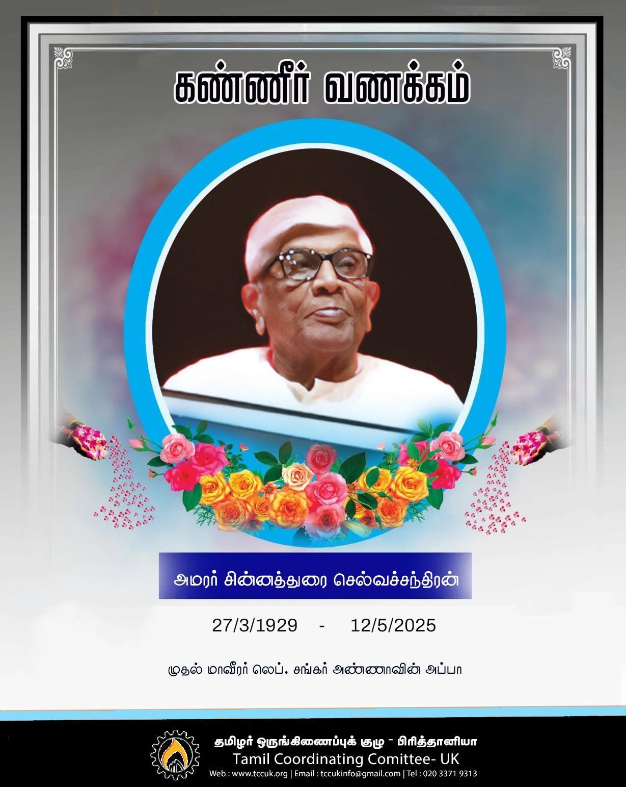 முதல் மாவீரர் லெப். சங்கர் அவர்களுடைய தந்தையார் சின்னத்துரை செல்வச்சந்திரன் (வயது 94) இன்று 12.05.2025 திங்கட்கிழமை இயற்கை எய்தி உள்ளார் அவருக்கு எமது இறுதி வணக்கத்தினை செலுத்துவோம்.