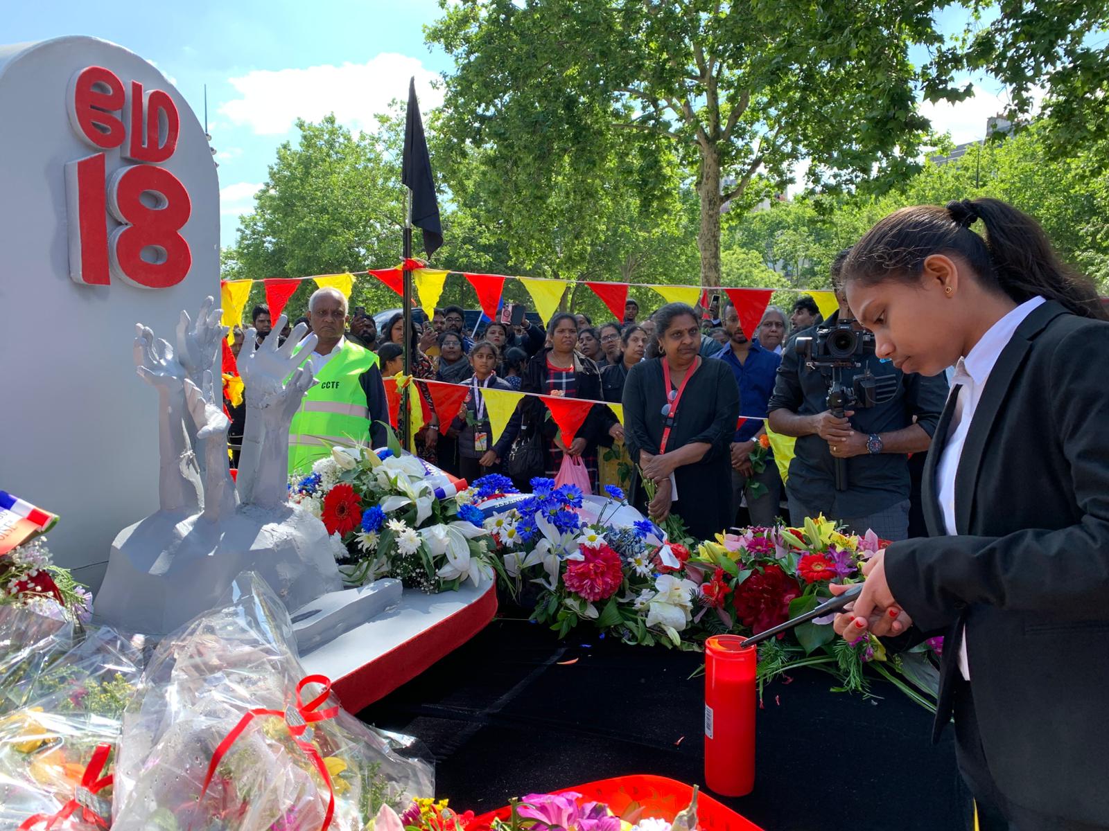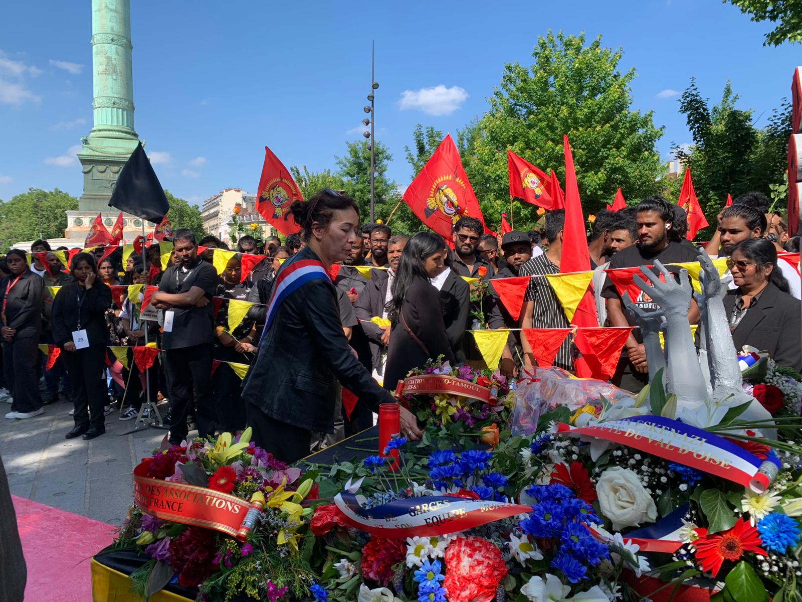 Place de la Bastille பகுதியில் அமைக்கப்பட்டிருந்த முள்ளிவாய்க்கால் நினைவுத்தூபி முன்பாக பொதுச் சுடரினை பிரான்சு தமிழர் ஒருங்கிணைப்புக் குழுவின் செயற்பாட்டாளர் திரு.சிறி அவர்கள் ஏற்றிவைக்க, ஈகைச் சுடரினை முள்ளிவாய்க்கால் மண்ணில் 07.05.2009 இல் சாவடைந்த பிரசாந்தி அவர்களின் மகள் ஏற்றிவைக்க, முள்ளிவாய்க்கால் மண்ணில் உறவுகளை இழந்த மற்றொரு குடும்ப உறுப்பினர் மலர்வணக்கம் செலுத்தினார்.