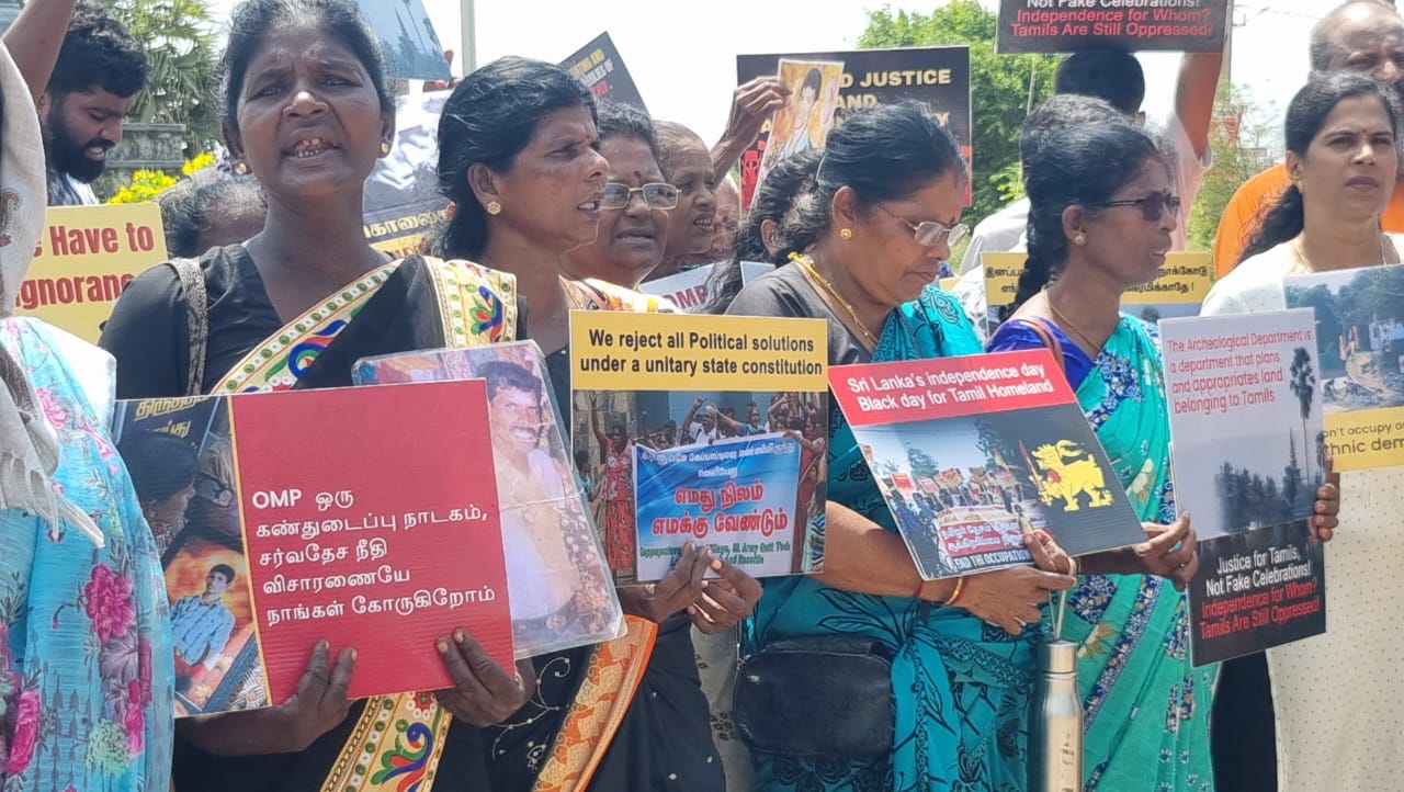 வடக்கு கிழக்கு வலிந்து காணாமல் ஆக்கப்பட்டோரது உறவுகளால் இந்த போராட்டம் முன்னெடுக்கப்பட்டது.