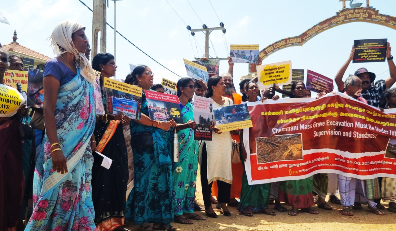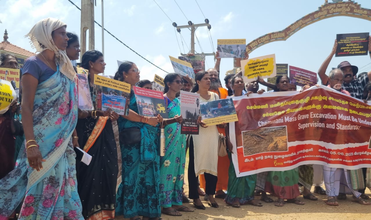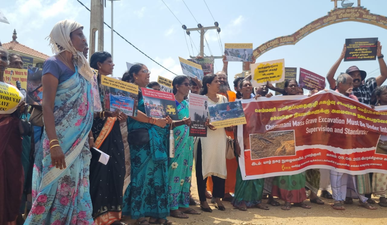 யாழ் செம்மணியில் கண்டுபிடிக்கப்பட்ட மனிதப் புதைகுழிக்கு நீதி வேண்டி இன்றையதினம் (05) செம்மணி சந்தியில் கவனயீர்ப்பு போராட்டம் ஒன்று முன்னெடுக்கப்பட்டது.
