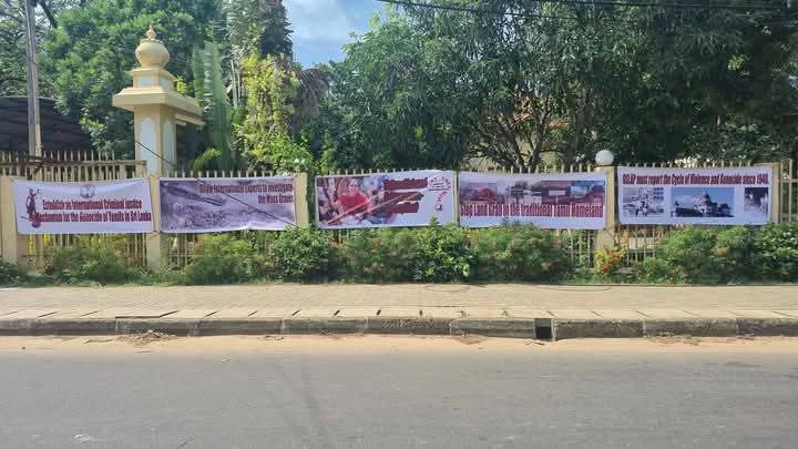 சிறப்பு செய்திகள் யாழ். பல்கலைக்கழக முன்றலில் தமிழின அழிப்பை வெளிப்படுத்தும் பதாதைகள்! By ஊடகன் - June 25, 2025 0 132 ஐக்கிய நாடுகள் உயர்ஸ்தானிகர் இன்று யாழ்ப்பாணம் வருகை தந்த போதுதமிழினப்படுகொலையை வெளிப்படுத்தும் முகமாக யாழ். பல்கலைக்கழக முன்றலில் பதாதைகள் காட்சிப்படுத்தப்பட்டன.