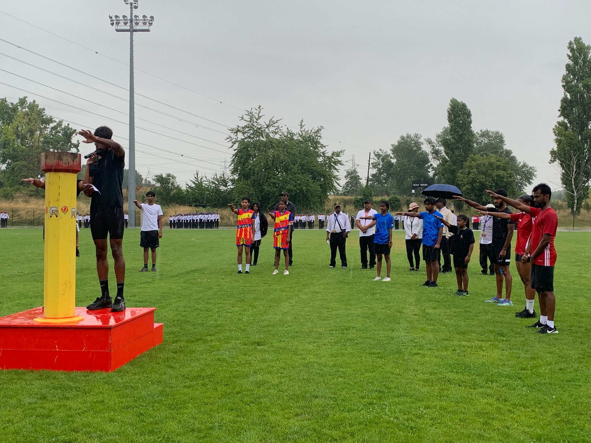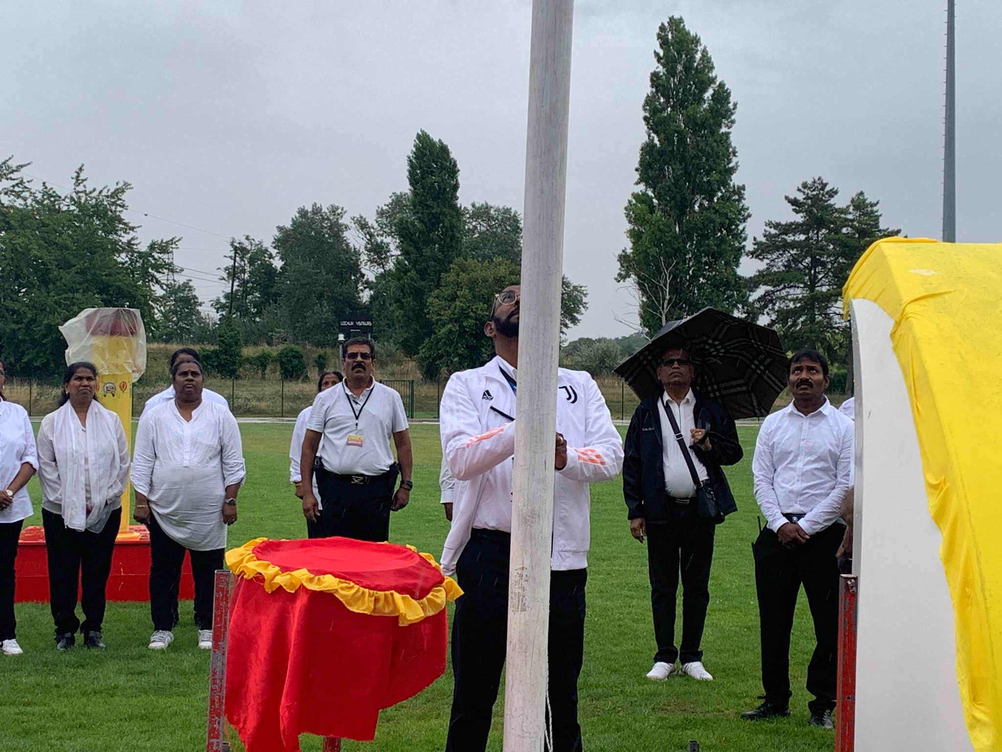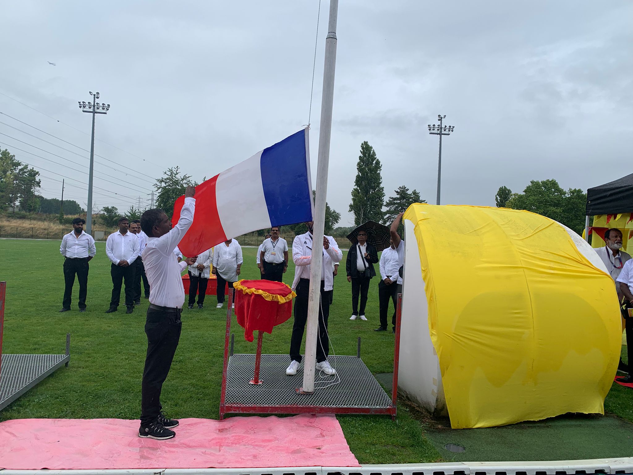 அனைவருக்கும் சமத்துவம், சகோதரத்துவம், சுதந்திரம் என்ற உன்னத கோட்பாடுகளைக் கொண்ட பிரான்சு தேசத்தின் கொடியேற்றி வைக்கப்பட்டது. தேசியக்கொடியை மெய்வல்லுநர் போட்டியின் முகாமையாளர் திரு. ராஜலிங்கம் அவர்கள் ஏற்றிவைக்க