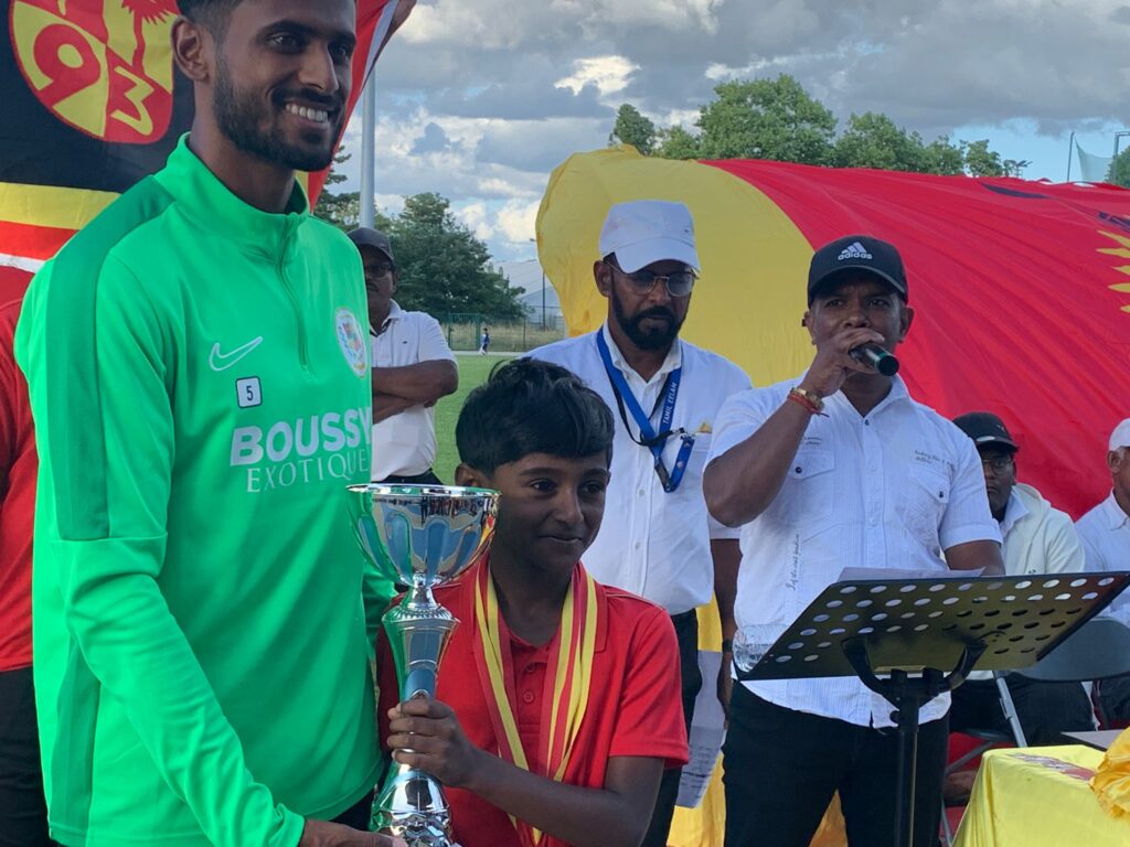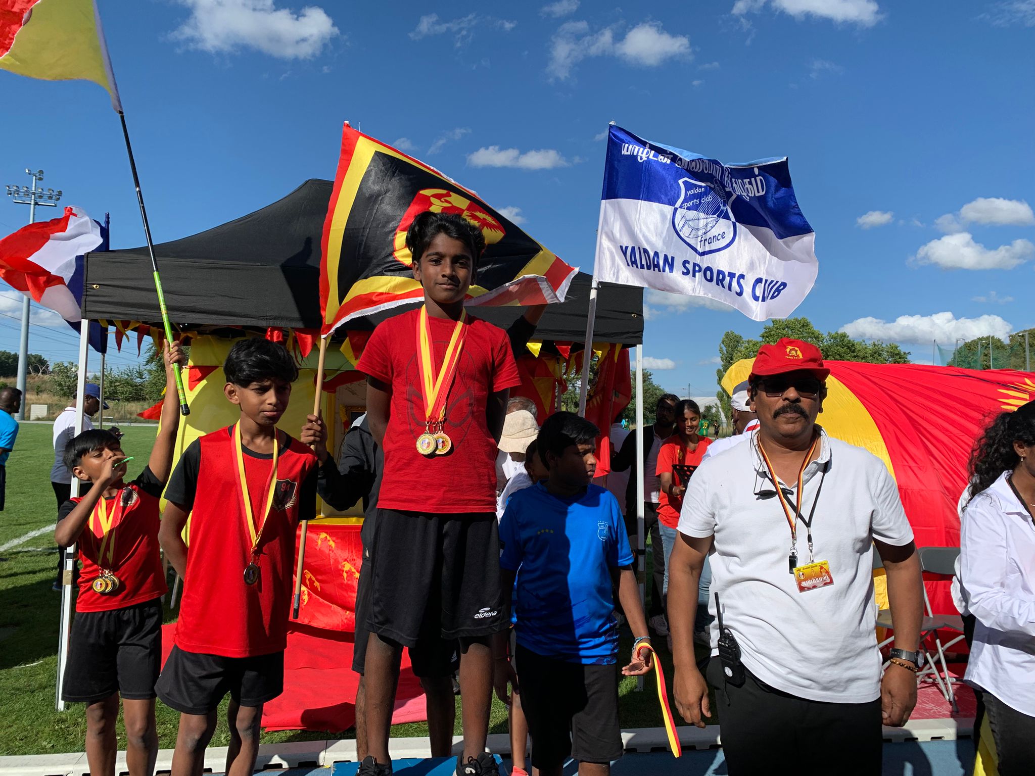 இதே வேளை நாடற்றவர்களின் தேசங்களிடையே சர்வதேச ரீதியாக நடைபெற்ற உதைபந்தாட்ட போட்டியில் தமிழீழ தேசத்தின் சார்பில் அதன் அணியில் பிரான்சு நாட்டின் வீரர்களாக பங்குபற்றி தமிழீழ தேசத்திற்கு விளையாட்டுதிறனால் பலம் சேர்த்த வீரர்கள், வீராங்கனை அதற்கு உறுதுணையாக இருந்து வரும் திரு. திபு மற்றும் சுரேஸ் போன்றவர்கள் மதிப்பளிக்கப் பட்டனர்.
