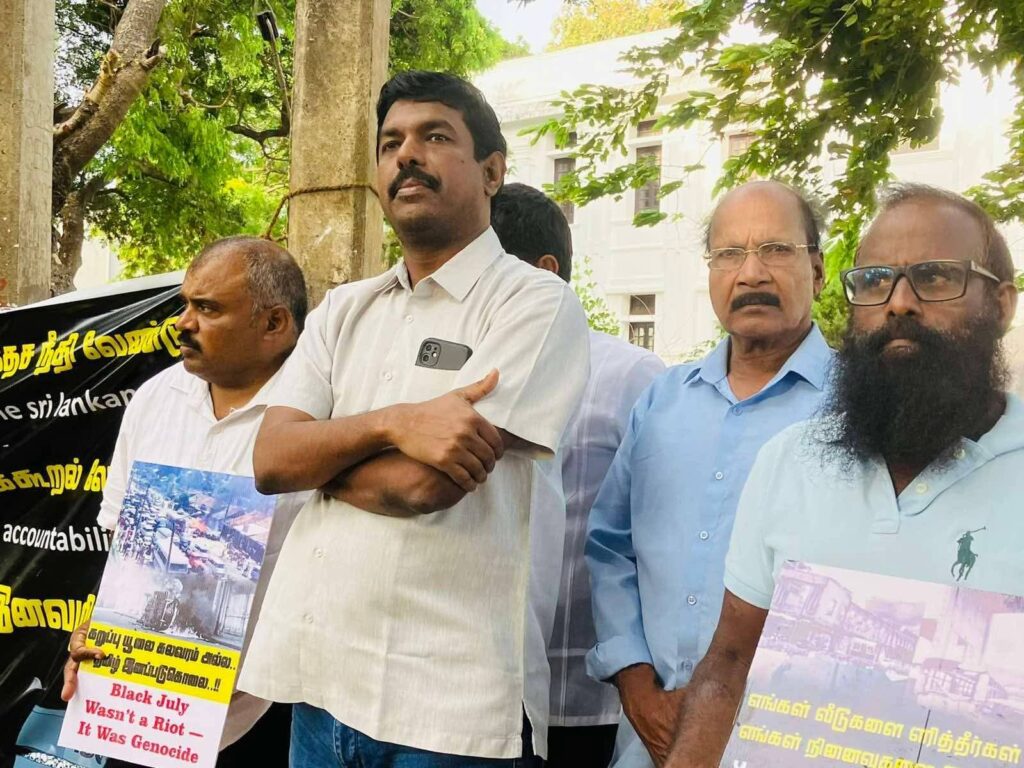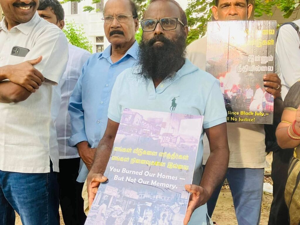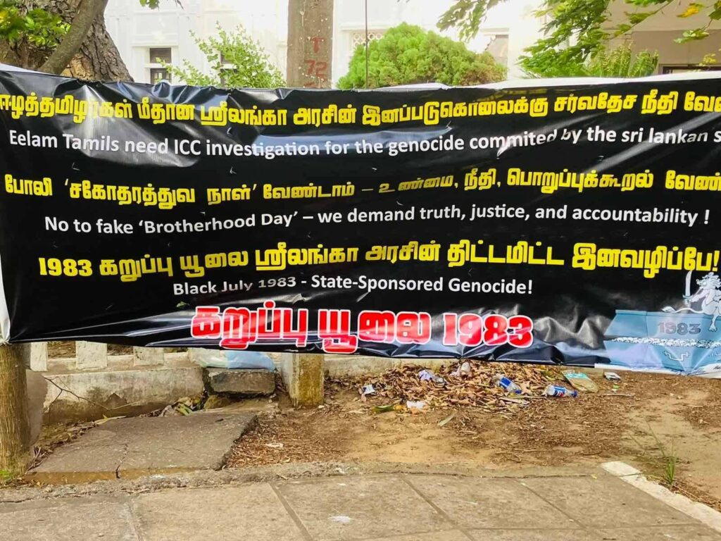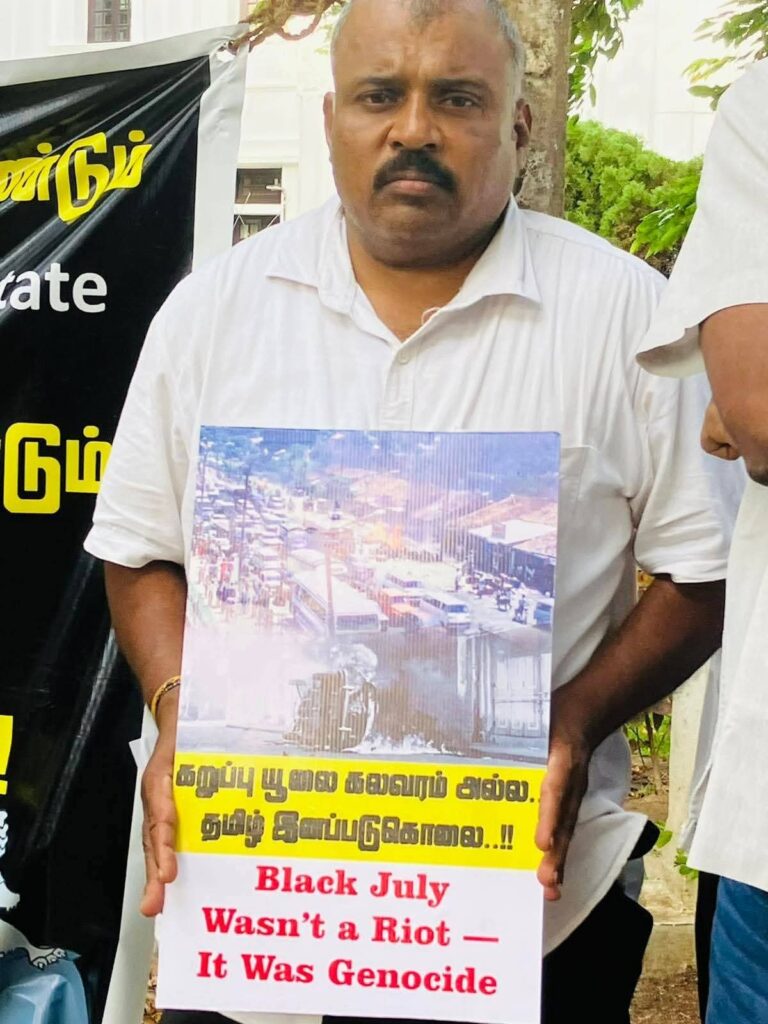 கடந்த 1983 ஆம் ஆண்டு இலங்கை பௌத்த சிங்கள பேரினவாத அரசால் தமிழ் மக்கள் மீது திட்டமிட்டு அரங்கேற்றப்பட்ட கறுப்பு யூலை 83 இனப்படுகொலையின் 42 ஆம் ஆண்டு நினைவேந்தல் நிகழ்வு நேற்று 23.07.2025 புதன்கிழமை மாலை 5.00 மணியளவில் யாழ்நகரில் முனியப்பர் ஆலய முன்றலில் இடம்பெற்றது.