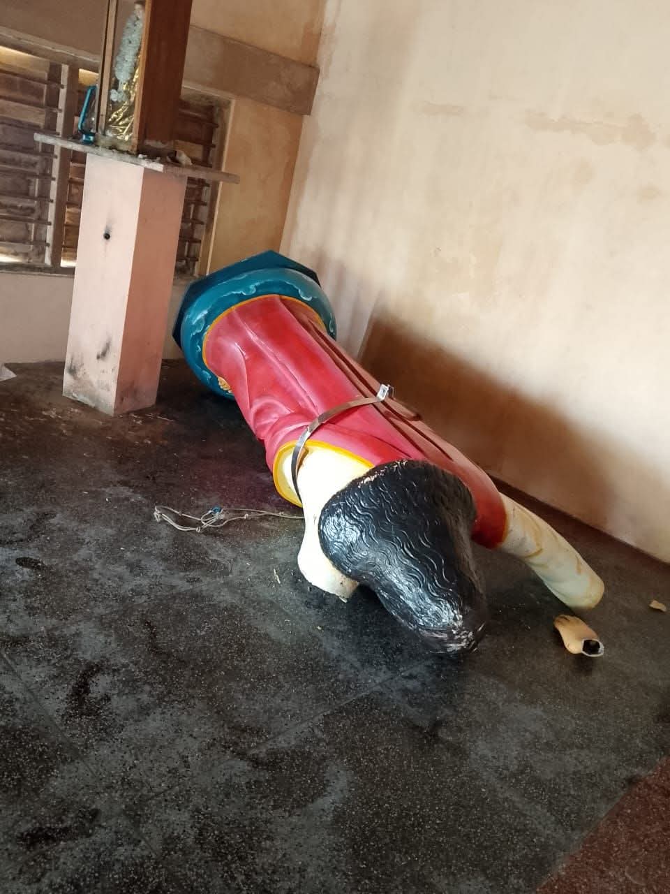 பின்னர் தேவாலயத்தினுள் அத்துமீறி மதுபோதையில் புகுந்து , இந்தியாவில் இருந்து கொண்டுவரப்பட்ட சுமார் 50 இலட்ச ரூபாய் பெறுமதியான மாதா சிலையை அடித்து உடைத்து , தள்ளி விழுத்தியுள்ளனர். அத்துடன் , தேவாலயத்தினுள் காணப்பட்ட ஏனைய பொருட்களையும் சேதப்படுத்தியுள்ளனர்