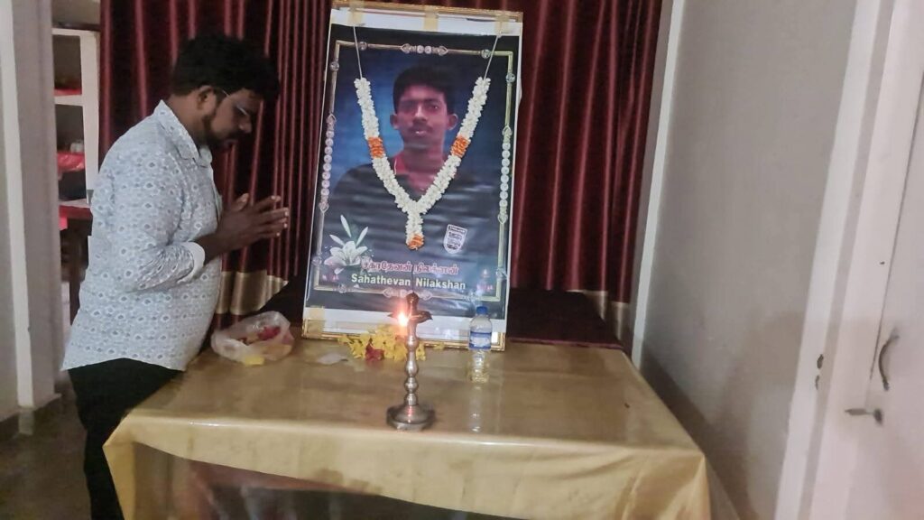இத் போது நிலக்சனின் திருவுருவ படத்திற்கு சுடரேற்றி மலர்மாலை அணிவித்து மலரஞ்சலி செலுத்தப்பட்டது.