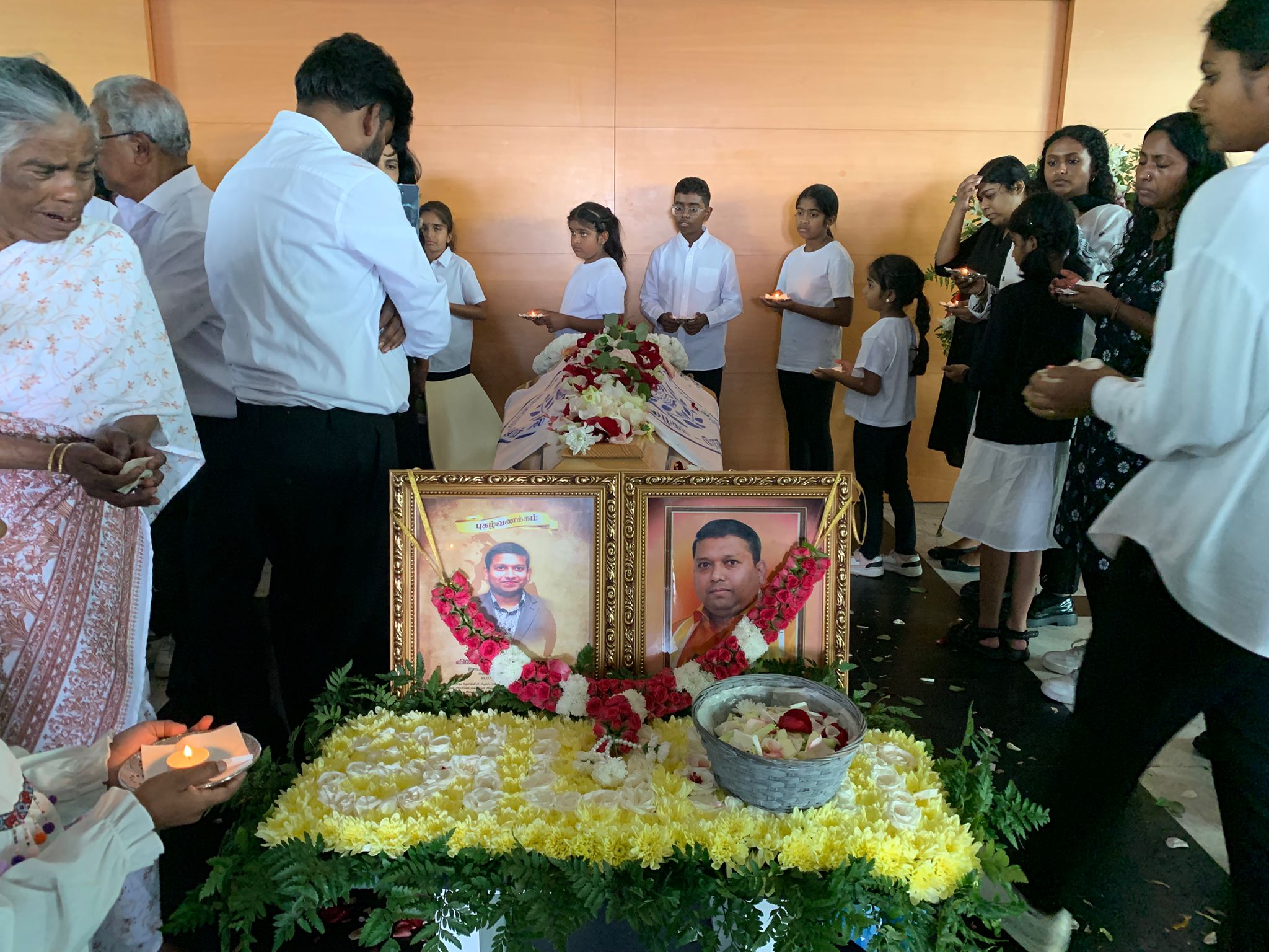 அதனைத் தொடர்ந்து குடும்ப உறவுகள், பொதுமக்கள் கண்ணீருடன் மலர் வணக்கம் செய்திருந்தனர். கலையாலும், தேசப்பணியாலும், அறிவிப்புப் பணிகளிலும் பணியாற்றியவர்கள், அவர் அரசியல் பணியாற்றிய கட்டமைப்புக்கள், மனிதநேயப்பணியாற்றிய தமிழர் புனர்வாழ்வுக்கழகம், அவர் பணியாற்றிய கலைபண்பாட்டுக்கழகம், பாரிஸ்சுருதி இசைக்குழுவினர்கள், கலைஞர்கள் தமது இரங்கல் உரைகளை வழங்கியிருந்தனர். இவரின் இறுதி வழியனுப்பும் நிகழ்வுக்கு ( இன்று வேலைநாட்களாக இருந்த போதும்) பல நூற்றுக்கணக்கான மக்கள் கலந்து கொண்டிருந்தனர். அவரையும், அவரின் தேசப்பணியையும் நேசித்த அனைவரின் அழுகைக்குரலுடன் புகழ்உடல் அக்கினியில் சங்கமமாகியது.