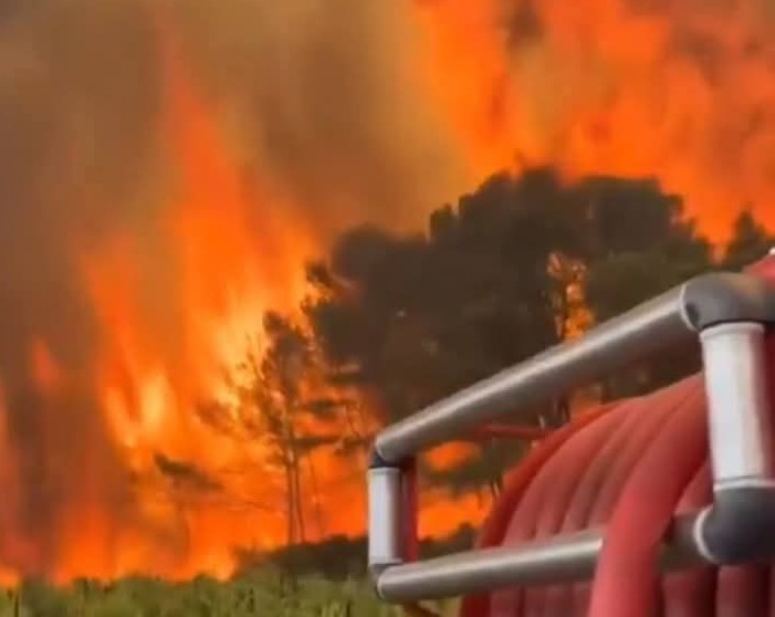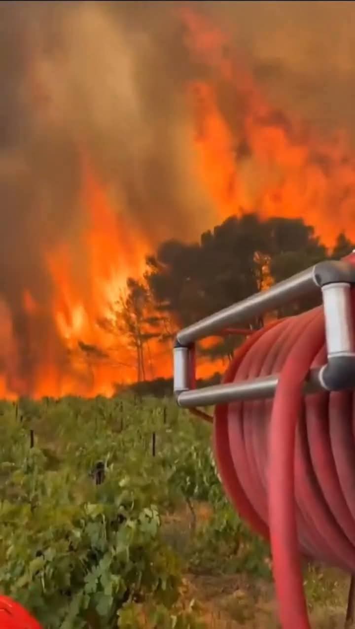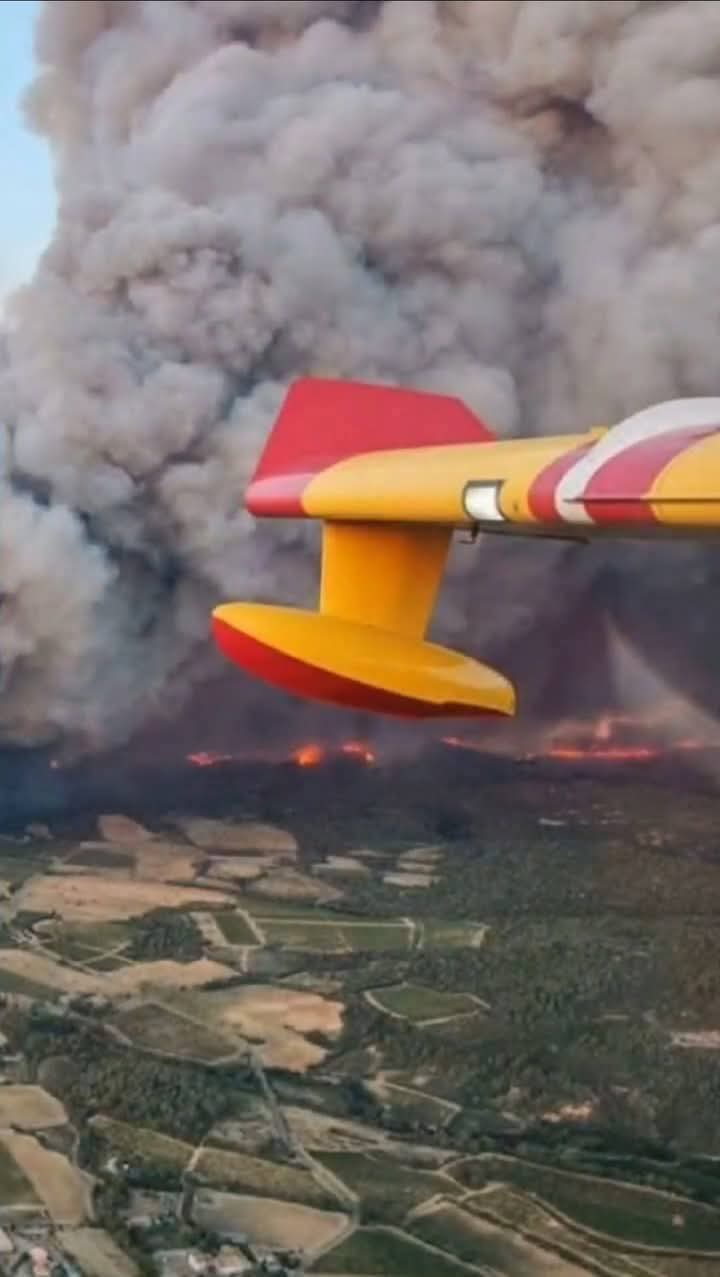 தெற்கு பிரான்சில் காட்டுத்தீ தொடர்ந்து பரவி வருவதால், வானம் அடர் புகையுடன் காணப்படுகிறது .
