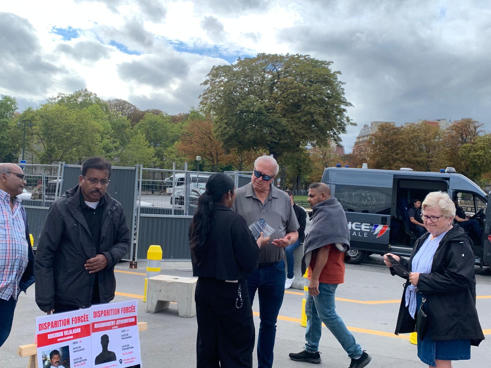 பிற்பகல் 15..30 மணிமுதல் பாரிஸ் ஈபிள் கோபுரம் அமைந்துள்ள ரொக்கெற்ரோ பகுதியில் இடம்பெற்ற இக்கண்காட்சியை பல வெளிநாட்டவர்களும் பார்த்து, கேட்டு எமது பிரச்சினைகளை அறிந்துகொண்டனர்.