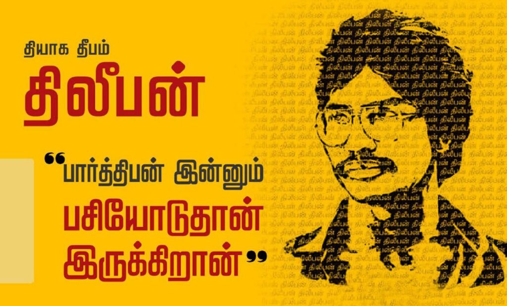 தியாக தீபன் திலீபன் 1987 இல் சமாதான படையாக தமிழீழப் பிரதேசமெங்கும் ஆக்கிரமித்து இருந்த அகிம்சை