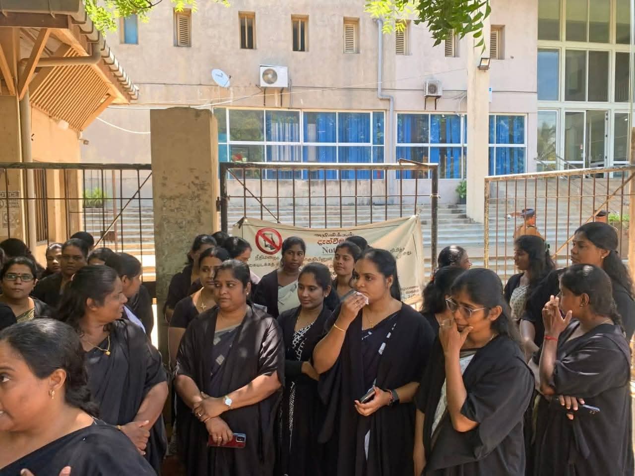 யாழ் மாவட்டத்தில் பணியாற்றுகின்ற சட்டத்தரணி சம்பந்தமாக எந்தவொரு நீதிமன்ற கட்டளைகளும் இல்லாமல் அவருடைய அலுவலகத்தில் அத்துமீறி பிரவேசித்து அலுவலகத்தை சோதனை நடத்தியதற்கு எதிராகவும், உரிய நீதிமுறையான நடவடிக்கைகள் பின்பற்றப்படாமல் பொலிஸார் மேற்கொள்ளுகின்ற அராஜகத்திற்கு எதிராகவும் எதிர்ப்பு நடவடிக்கைகளில் ஈடுபட்டிருந்தார்கள்..