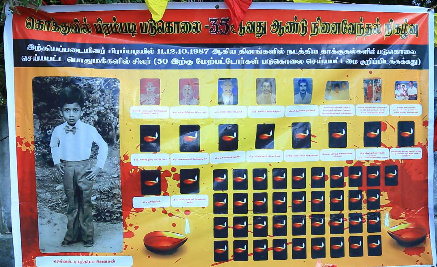 1987ஆம் ஆண்டு ஒக்டோபர் மாதம் 11 மற்றும் 12 ஆகிய இரு தினங்களில் இந்திய இராணுவத்தினரால் “ஒப்பரேசன் பவன்” நடவடிக்கை மூலம் மிகவும் மோசமான முறையில் துப்பாக்கியால் சுட்டும், உயிருடன் வீதியிலும் ரயில் தண்டவாளத்திலும் குப்பறப்படுக்க வைத்துக் கவச வாகனங்களினால் நசித்தும் 50 க்கும் மேற்பட்ட தமிழ்மக்கள் படுகொலை செய்யப்பட்டனர்.