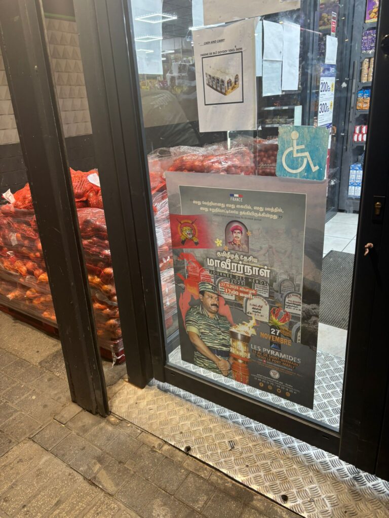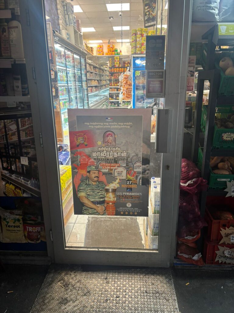 சிறப்பு செய்திகள்புலத்துச்செய்திகள் பிரான்சில் தமிழர் வர்த்தக அங்காடிகளில் மாவீரர் நாள் சுவரொட்டிகள்! By ஊடகன் - October 28, 2025 0 70 தமிழீழத் தேசிய மாவீரர்நாள் 2025 பிரான்சு நிகழ்வின் துண்டுப்பிரசுரங்கள் செயற்பாட்டாளர்களால் கடந்த 26.10.2025 ஞாயிற்றுக்கிழமை 93 பிரதேசங்களில் உள்ள தமிழர் அங்காடிகளில் மாவீரர் நாள் சுவரொட்டிகள் ஒட்டப்பட்டன