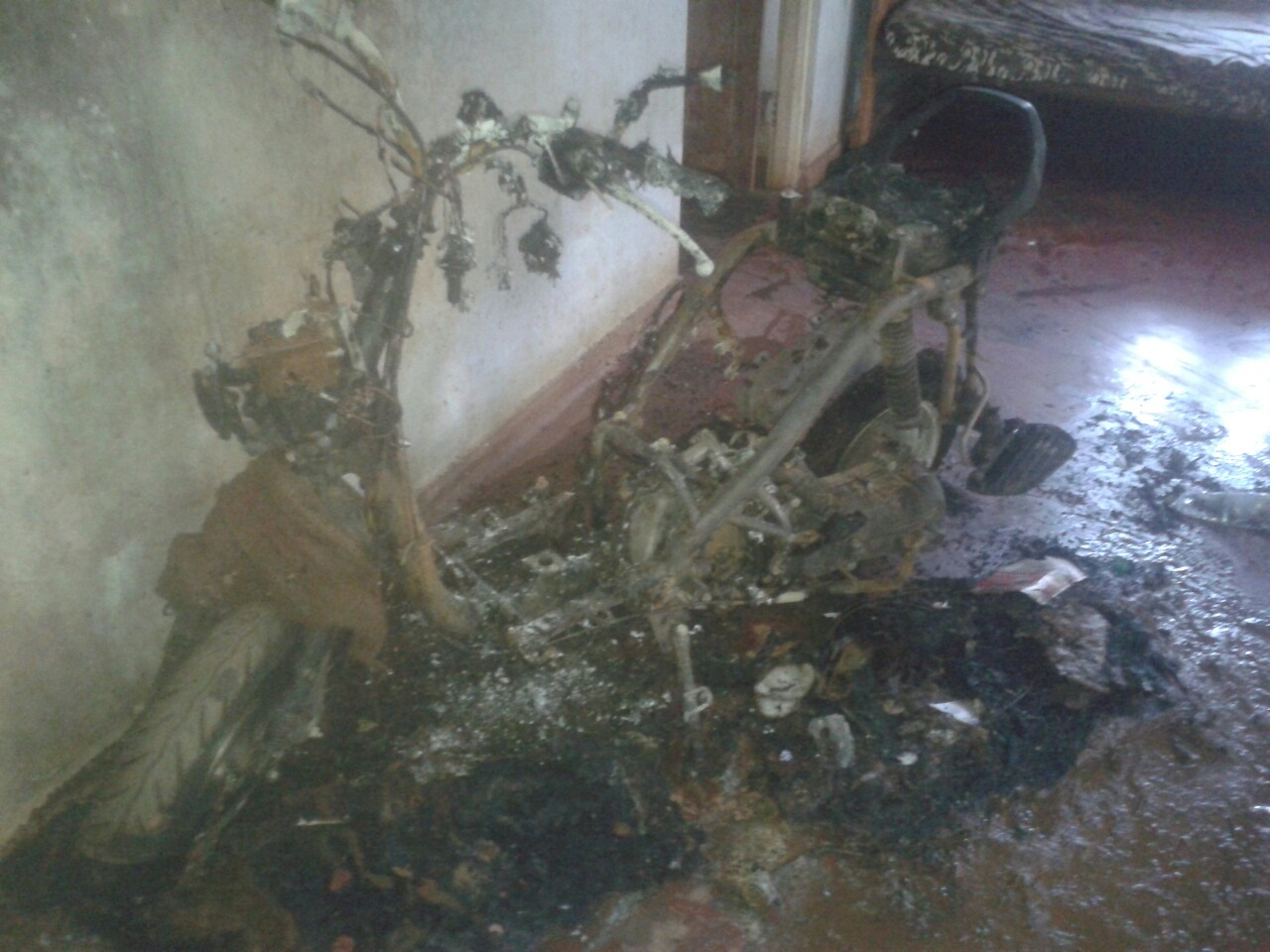 மடைந்ததோடு ரூபா 9 இலட்சம் பெறுமதியான இரண்டு மோட்டார் சைக்கிள்கள் மற்றும் ரூபா 4 இலட்சம் பணம் ஒரு தொகை நகை மற்றும் வீட்டு உறுதி என்பன எரிந்து நாசமாகியுள்ளது.