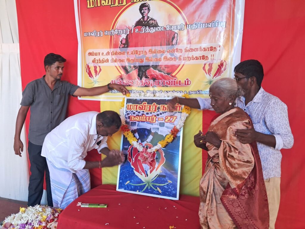 முல்லைத்தீவு மாவட்டத்தின் மல்லாவிப் பகுதியில் தமிழ் தேசிய மக்கள் முன்னணியின் ஏற்ப்பாட்டில் மாவீரர்களின் பெற்றோர் மதிப்பளிப்பு நிகழ்வு நேற்று (19) மிகச் சிறப்பாக இடம் பெற்றது