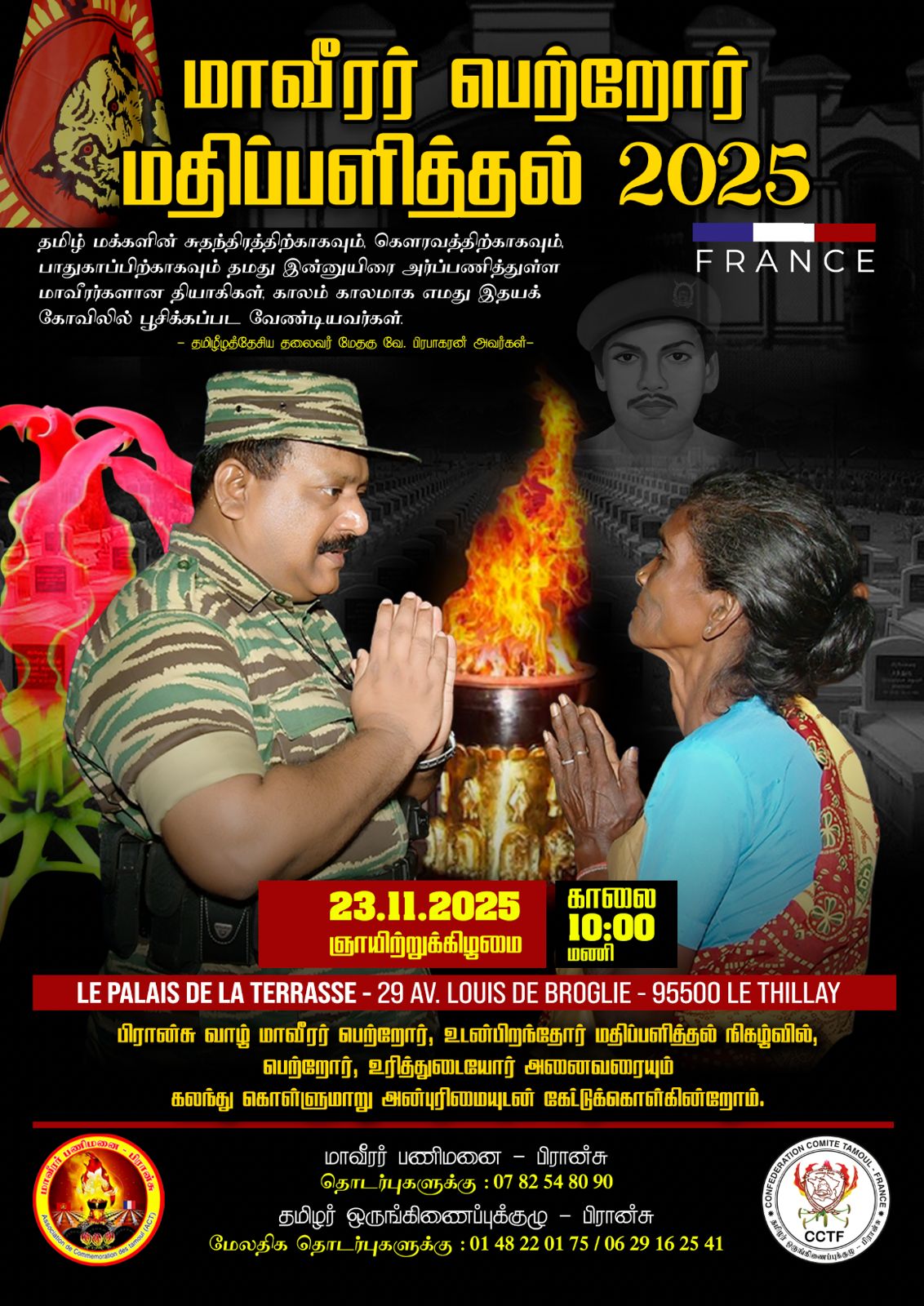 சிறப்பு செய்திகள்புலத்துச்செய்திகள் பிரான்சு வாழ் மாவீரர் பெற்றோர் உரித்துடையோர் மதிப்பளிப்பு நிகழ்வு இன்று! By ஊடகன் - November 23, 2025 0 87 பிரான்சு வாழ் மாவீரர் பெற்றோர் உரித்துடையோர் மதிப்பளிப்பு நிகழ்வு இன்று (20.11.2022) ஞாயிற்றுக்கிழமை காலை 10.00 மணிக்கு குசான்வீல் பகுதியில் இடம்பெறவுள்ளது.