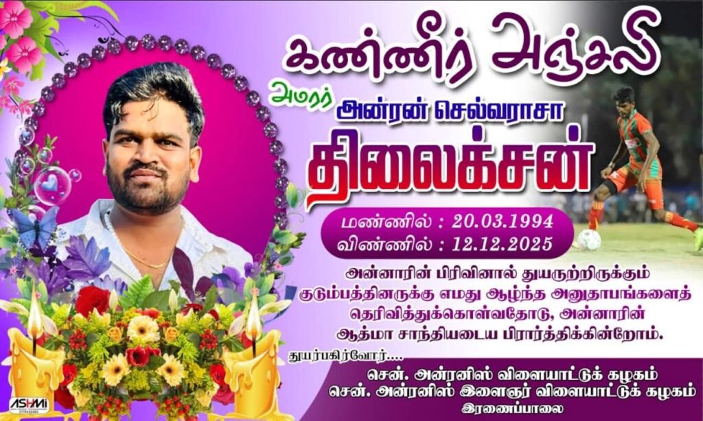 உயிரிழந்தவர் புதுக்குடியிருப்பு இரணைப்பாலை சென்அன்ரனிஸ் விளையாட்டுக்கழகத்தின் ஒர் உதைபந்தாட்ட வீரனும் முல்லைத்தீவு மாவட்டத்தின் உதைபந்தாட்ட நடுவராகவும் செயற்பட்ட சிறந்த விளையாட்டு வீரனே இவ்வாறு உயிரிழந்துள்ளார்.