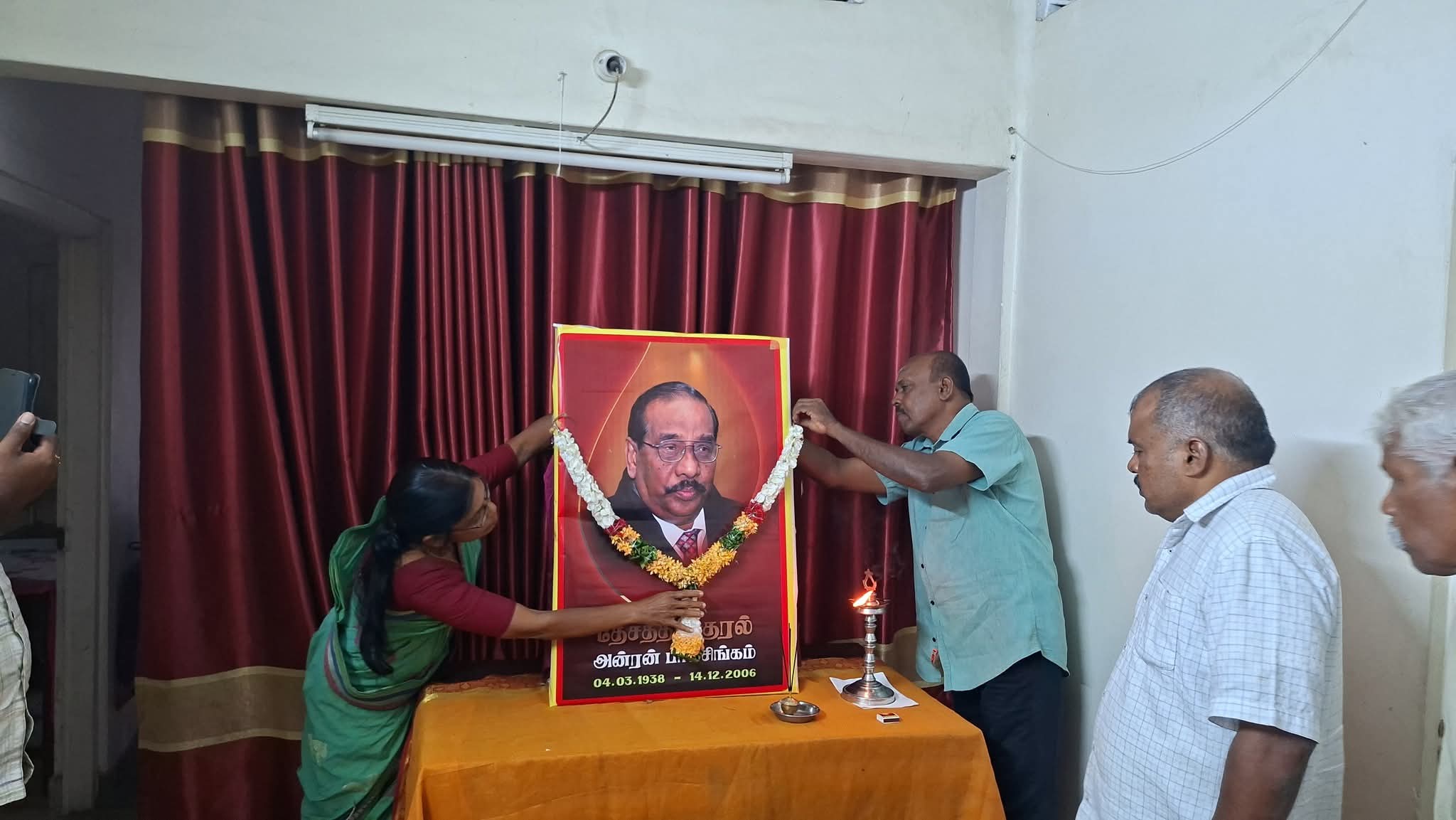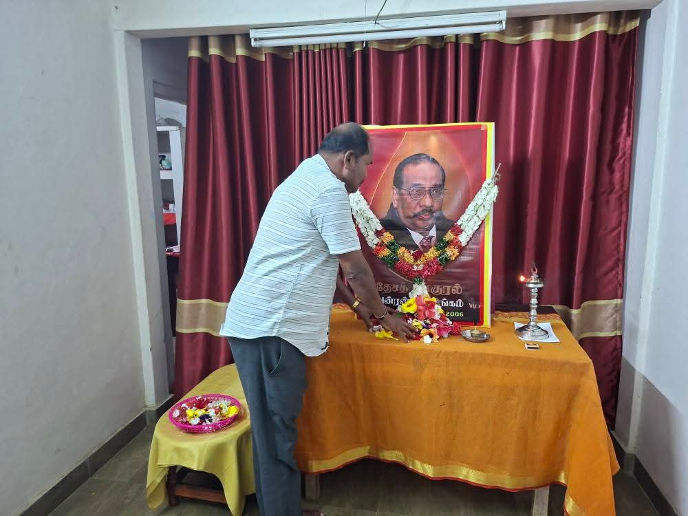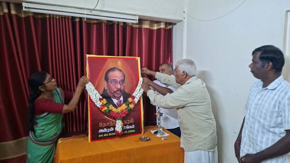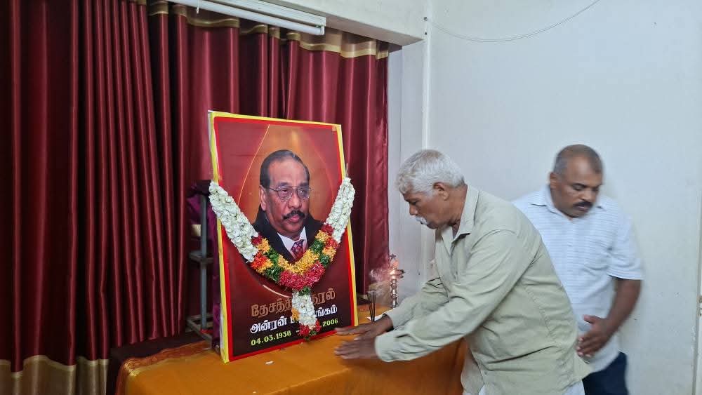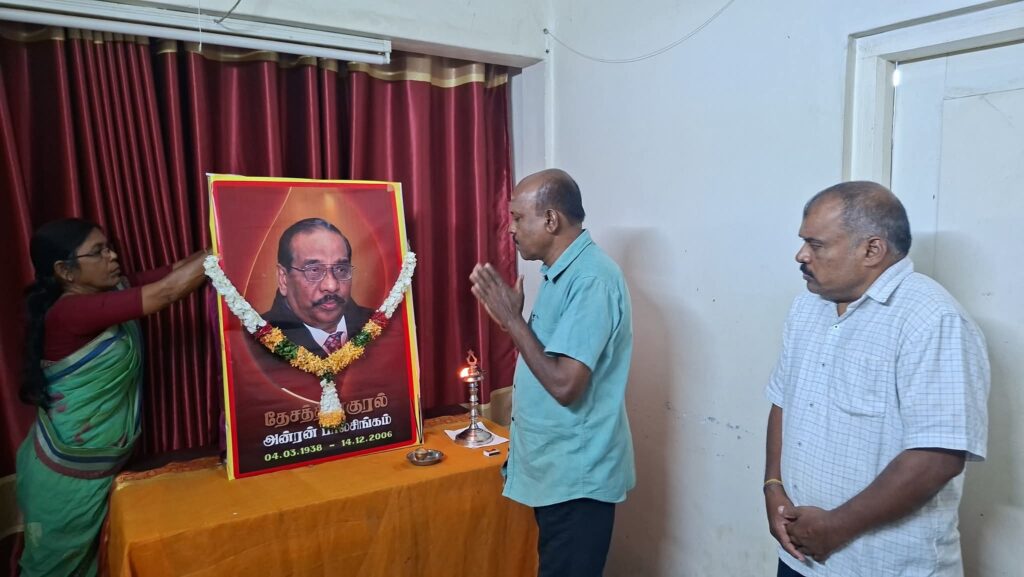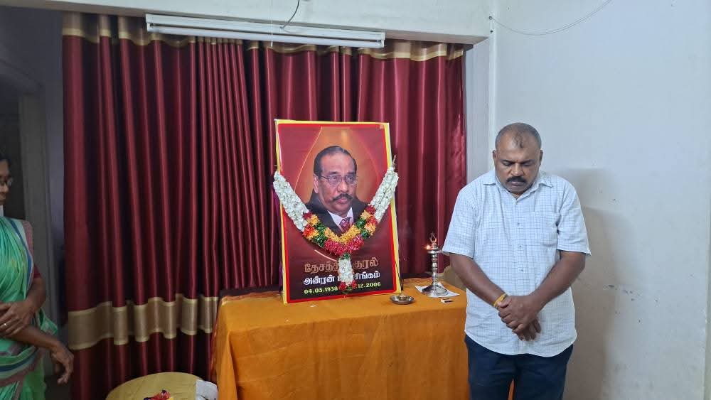 ஈழச்செய்திகள்சிறப்பு செய்திகள் யாழில் தேசத்தின் குரல் அன்ரன் பாலசிங்கம் அவர்களின் 19ம்ஆண்டு நினைவேந்தல்! By ஊடகன் - December 14, 2025 0 68 தேசத்தின் குரல் அன்ரன் பாலசிங்கம் அவர்களின் 19ம்ஆண்டுநினைவேந்தல் தமிழ்த்தேசிய மக்கள் முன்னணியின் தலைமையகத்தில் செயலாளர் செல்வராசா கஜேந்திரன் தலைமையில் இன்று இடம்பெற்றது.