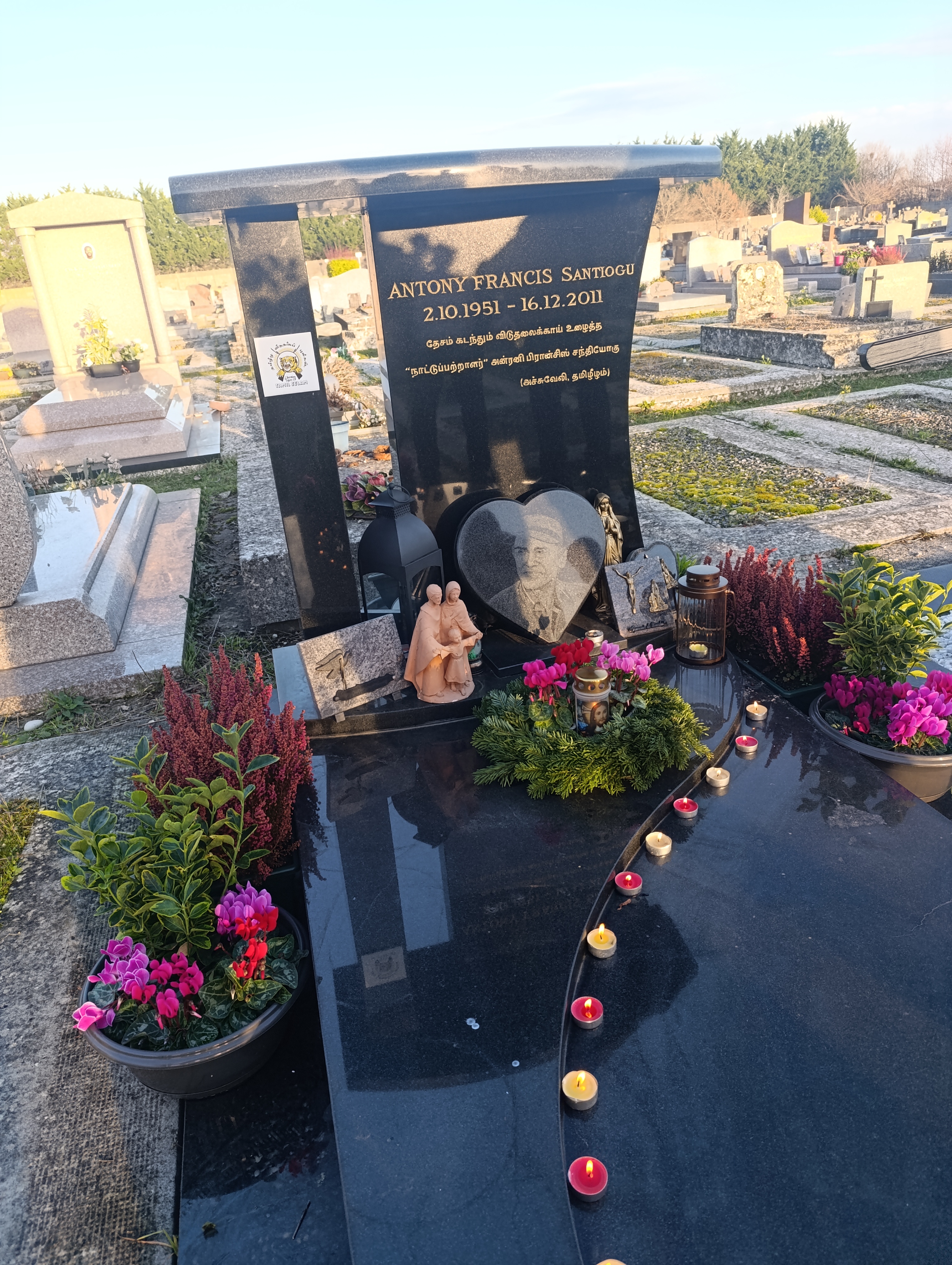 பிரான்சில் 16.12.2011 அன்று சாவடைந்த “மாமா” என்று அன்போடு அழைக்கப்பட்டவரும் “ஈழமுரசு’ இதழை வெளிக்கொண்டுவந்த பூபாளம் நிறுவனம் மற்றும் ஊடக இல்லத்தின் தலைவராக இருந்த நாட்டுப்பற்றாளர் பிரான்சிஸ் அந்தோனி சந்தியோகு அவர்களின் 14 ஆவது ஆண்டு நினைவவேந்தல் நிகழ்வு இன்று 16.12.2025 செவ்வாய்க்கிழமை Lemeil Brevannes நகரில் அமைந்துள்ள அவரது கல்லறையில் இடம்பெற்றது.