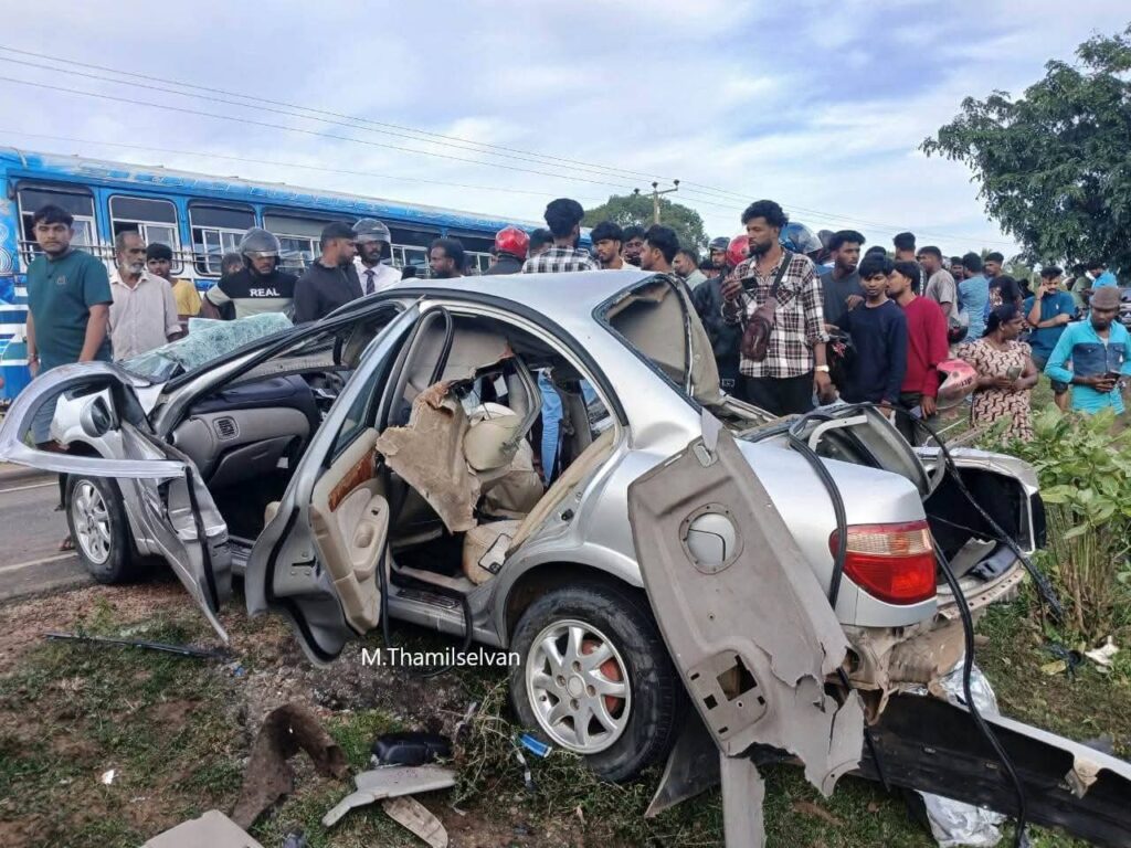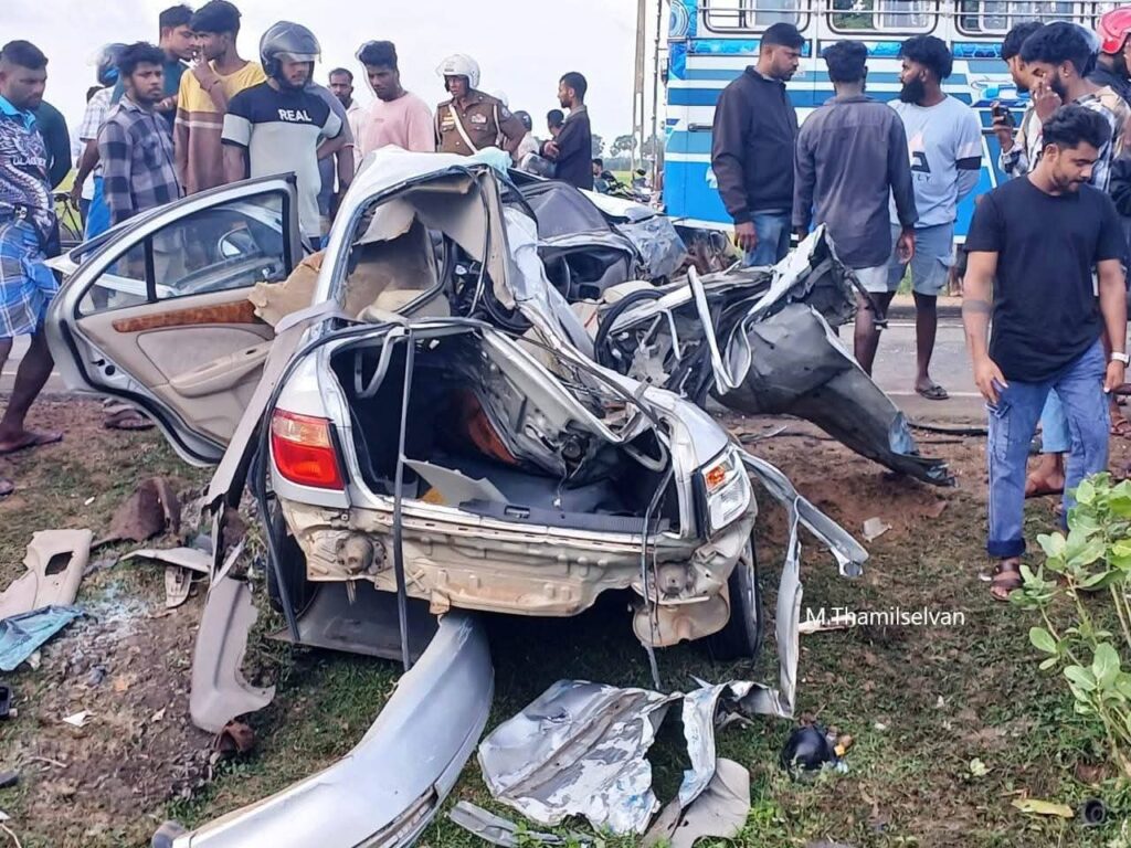இதன் போது, மகிழுந்தில் பயணித்த நான்கு பேர் பலியாகியுள்ளனர்.