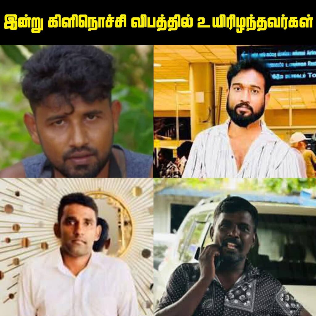 கிளிநொச்சி காவல்துறை பிரிவிற்குட்பட்ட முரசுமோட்டை – நான்காம் கட்டை பகுதியில் இடம்பெற்ற விபத்தில் நால்வர் உயிரிழந்துள்ளனர்..