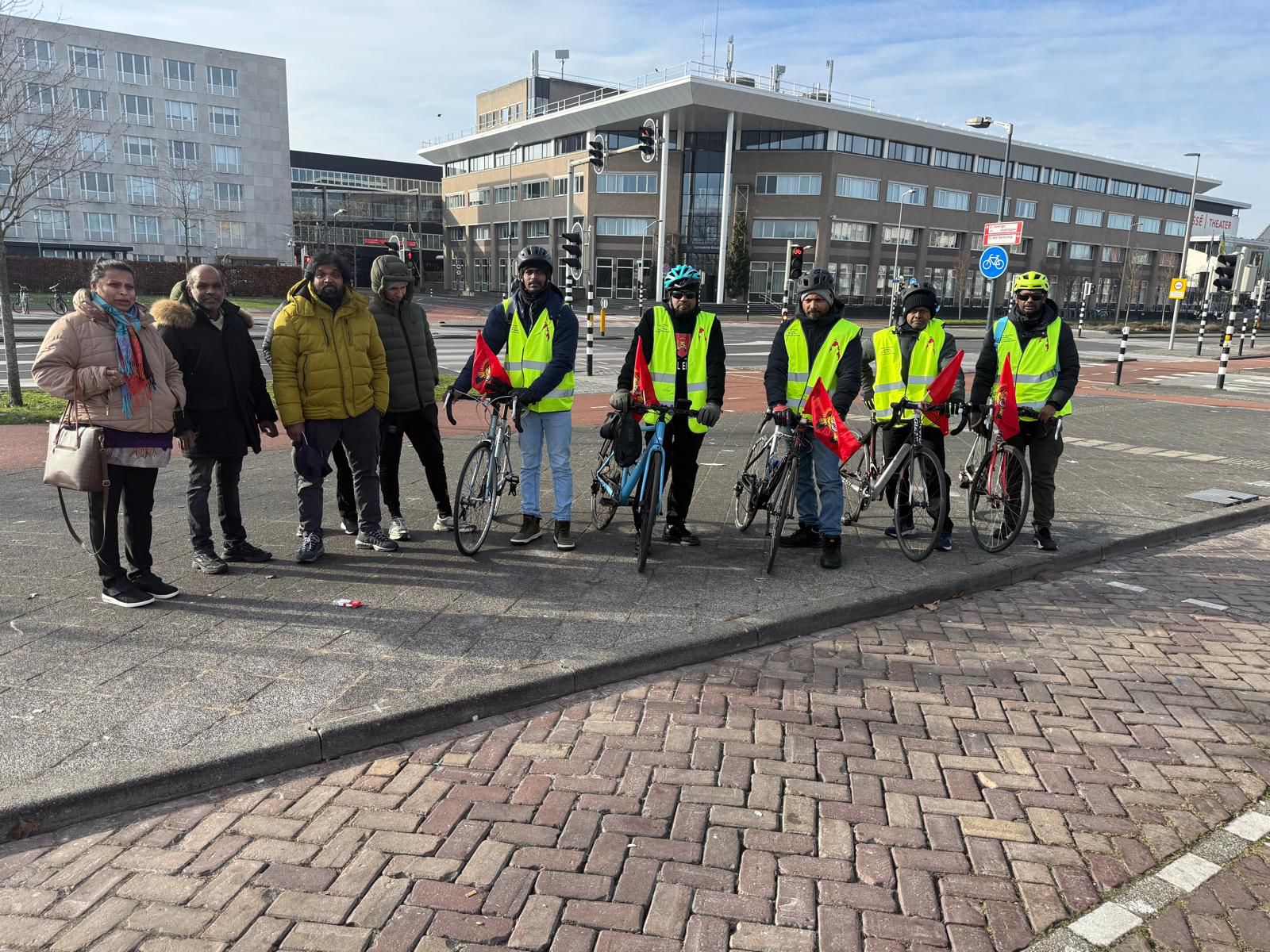 மனித உரிமைகள் ஆணையகத்தின் 61 வது கூட்டத்தொடரில் சிறிலங்கா பேரினவாத அரசினால் திட்டமிட்டு நடாத்தப்படுகின்ற தமிழின அழிப்பிற்கு அனைத்துலக சுயாதீன விசாரணையை நடாத்தக் கோரியும் தமிழீழமே தமிழர்களுக்கான நிரந்திர தீர்வு என்பதனை வலியுறுத்தியும் கடந்த 1202.2026 அன்று பிரித்தானியாவில் ஆரம்பமான மனிதநேய ஈருருளிப் பயணமானது இன்று மதியம் 13:30 மணியளவில் நெதர்லாந்து – பெல்சிய எல்லையினை அடைந்து, வுர்வேசல் என்னும் இடத்தில் அகவணக்கத்துடன் ஆரம்பித்த ஈருருளிப்பயணமானது அன்வேர்பனில்(Antwerpen) அமைந்துள்ள மாவீரர் நினைவுக்கல்லறயில் மாலை 16:40 மணியளவில் சென்றடைந்துள்ளது. நாளை காலை 8 மணியளவில் அதே இடத்தில் ஆரம்பித்து ஈருருளிப் பயணமானது பெல்ஜியம், யேர்மனி, பிரான்சினை கடந்து தொடர்ந்து ஜெனிவாவை சென்றடையும்.