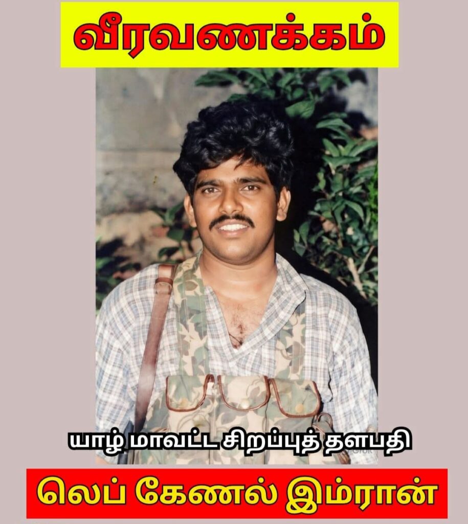 யாழ் மாவட்டம் உரும்பிராய் பகுதியில் 03.03.1988 அன்று இந்தியப் படையினருடன் ஏற்பட்ட நேரடி மோதலின் போது வீரச்சாவடைந்த யாழ். மாவட்ட சிறப்புத் தளபதி லெப். கேணல் இம்ரான். .