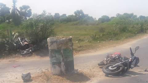 இவ்வாறு வந்த இரண்டு உந்துருளிகளும் யாக்கருச் சந்தியில் மோதி விபத்துக்குள்ளானது.