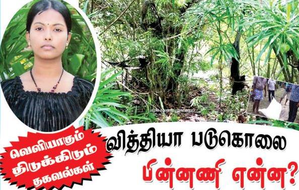 ந்து பாடசாலைக்கு செல்வதற்கு ஆயத்தமாகிய வித்தியா, யாருமே அற்ற பற்றைகள் நிறைந்த வீதியூடாக தனது பாடசாலைக்கு செல்கிறாள், பாடசாலை சென்ற வித்தியா பாடசாலை முடிவுற்று வழமையாக வீடு திரும்பும் நேரம் மூன்று மணியாகியும் வீட்டிற்கு அன்றைய தினம் வரவில்லை.