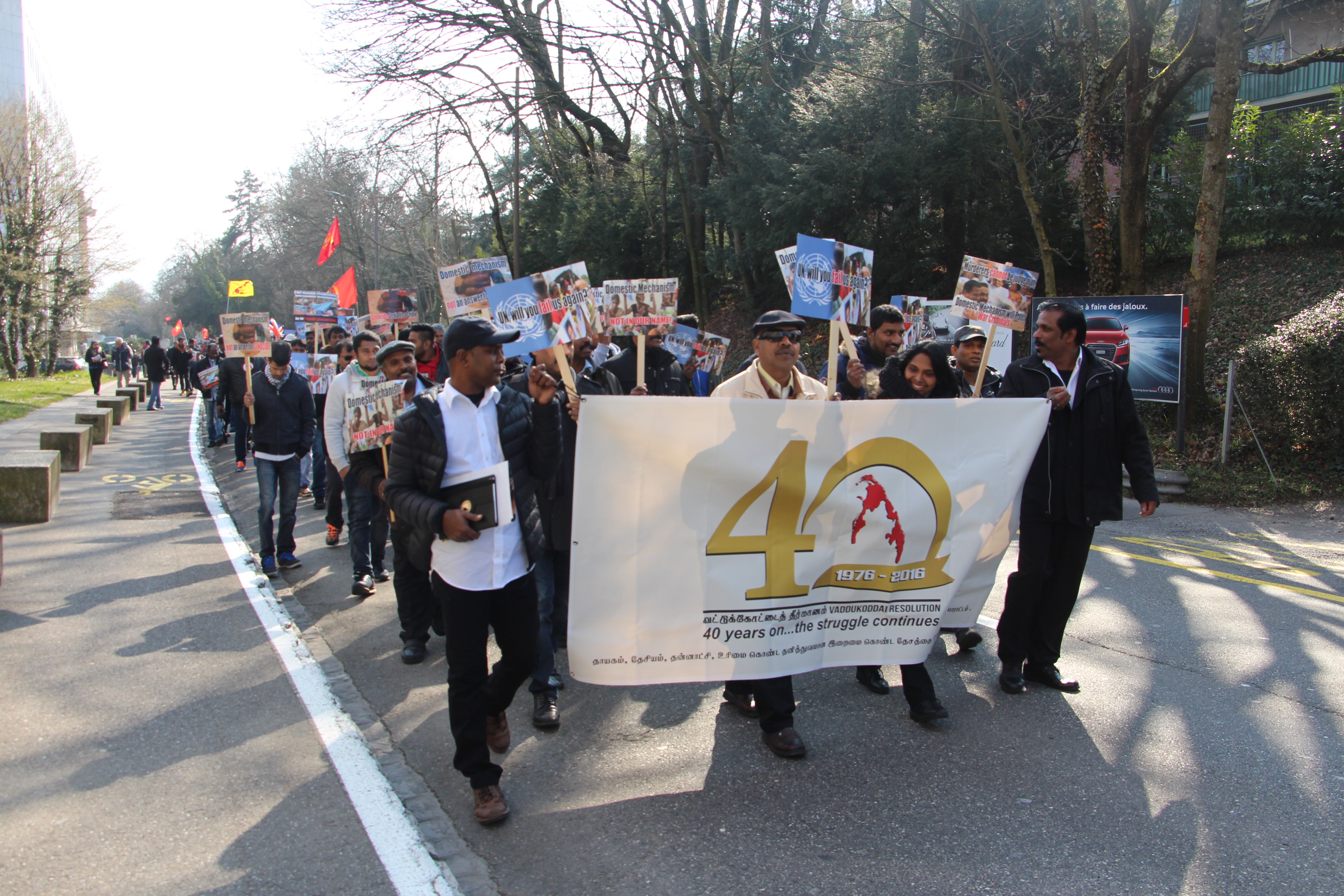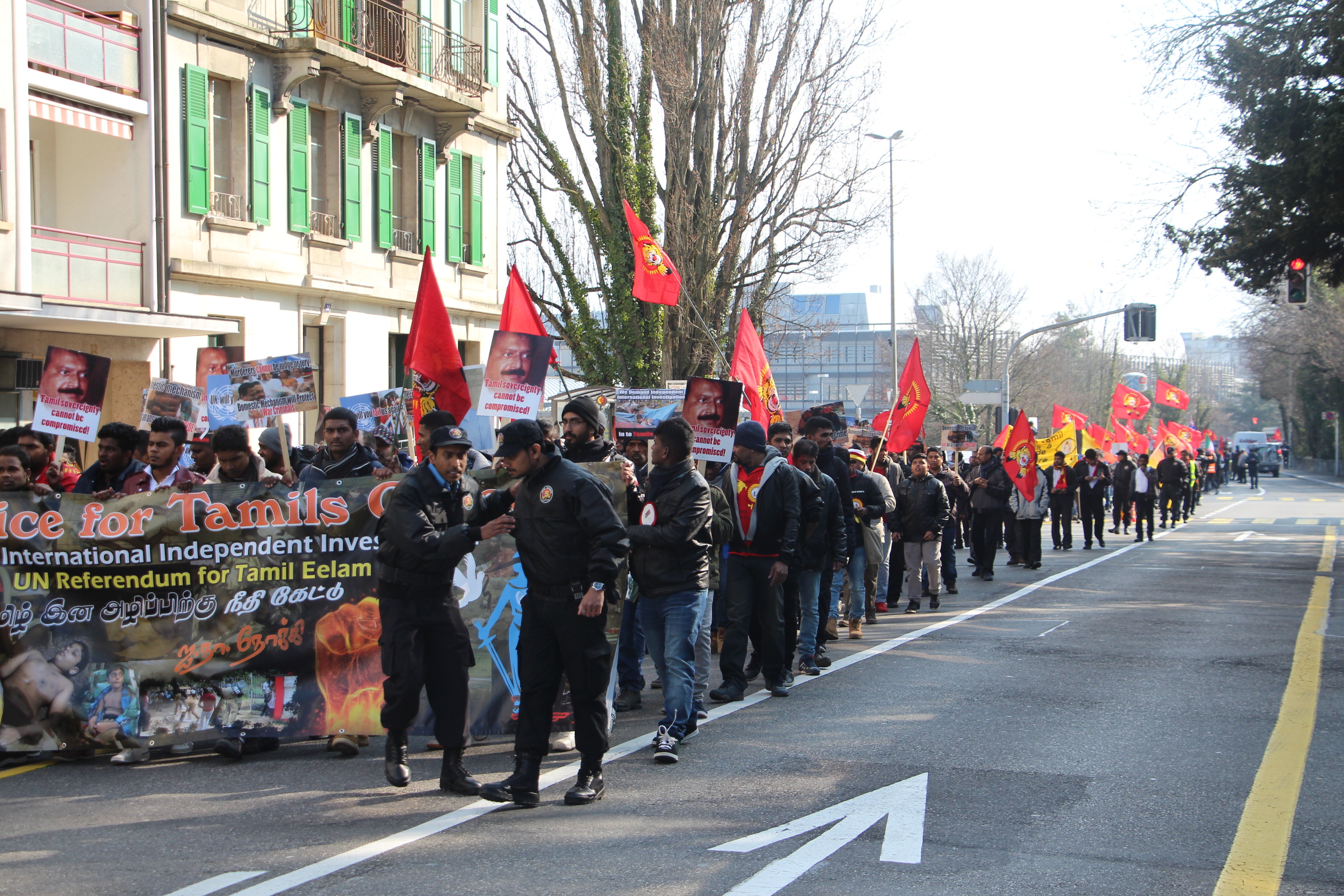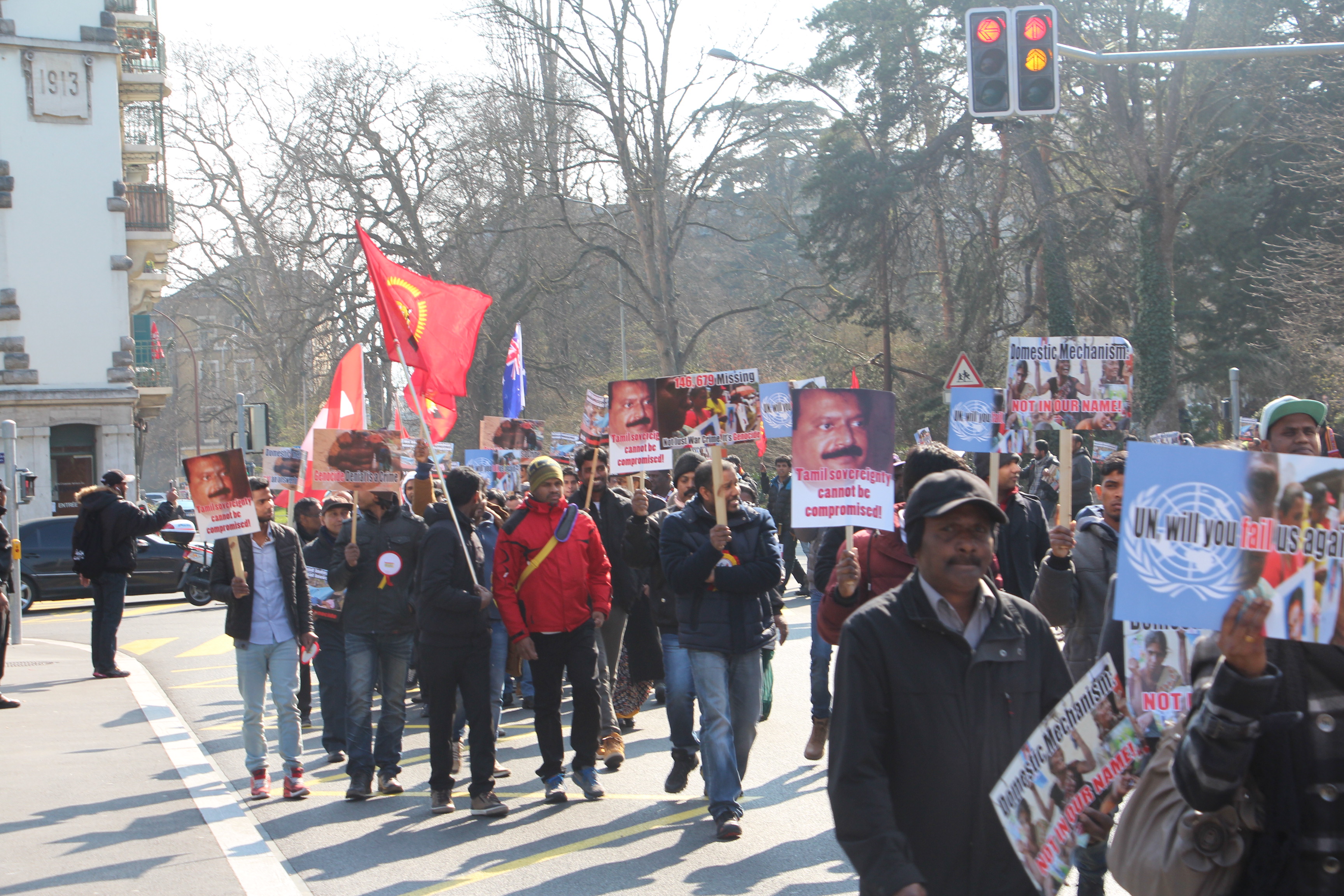 ஜெனீவா பிரதான புகையிரத நிலையத்திற்கு அண்மையில் உள்ள திடலில் ஆரம்பமான இந்த பேரணி முருகதாசன் திடலை நோக்கி நகர்ந்து சென்றது.