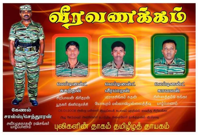 05.01.2008 அன்று மன்னார் மாவட்டம் பள்ளமடுப்பகுதியில் சிறிலங்கா படைகளின் ஆழஊடுருவும் படைப்பிரிவு நடாத்திய கிளைமோர்த் தாக்குதலில், படைய புலனாய்வுப் பிரிவு பொறுப்பாளர் கேணல் சாள்ஸ் (சண்முகநாதன் ரவிசங்கர் யாழ்ப்பாணம்) லெப்டினன்ட் சுகந்தன் (சிவபாலன் கிரிதரன் – கிளிநொச்சி) லெப்டினன்ட் காவலன் (சின்னத்தம்பி கங்காதரன் – யாழ்ப்பாணம்) லெப்டினன்ட் வீரமாறன் (பரராஜசிங்கம் சுதன் – முல்லைத்தீவு) ஆகிய போராளிகள் வீரச்சாவைத் தழுவிக் கொண்டனர்.