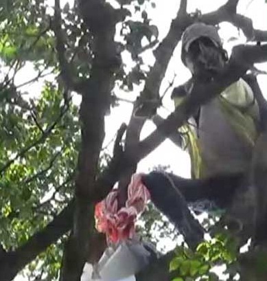 வாக்களித்துவிட்டு, வாக்களிப்பு நிலையத்திலிருந்து வெளியேறிய வாக்காளர் ஒருவர் வாக்குச்சாவடிக்கு அண்மையில் உள்ள மரமொன்றில் ஏறியமர்ந்து கொண்டுள்ளார்.
