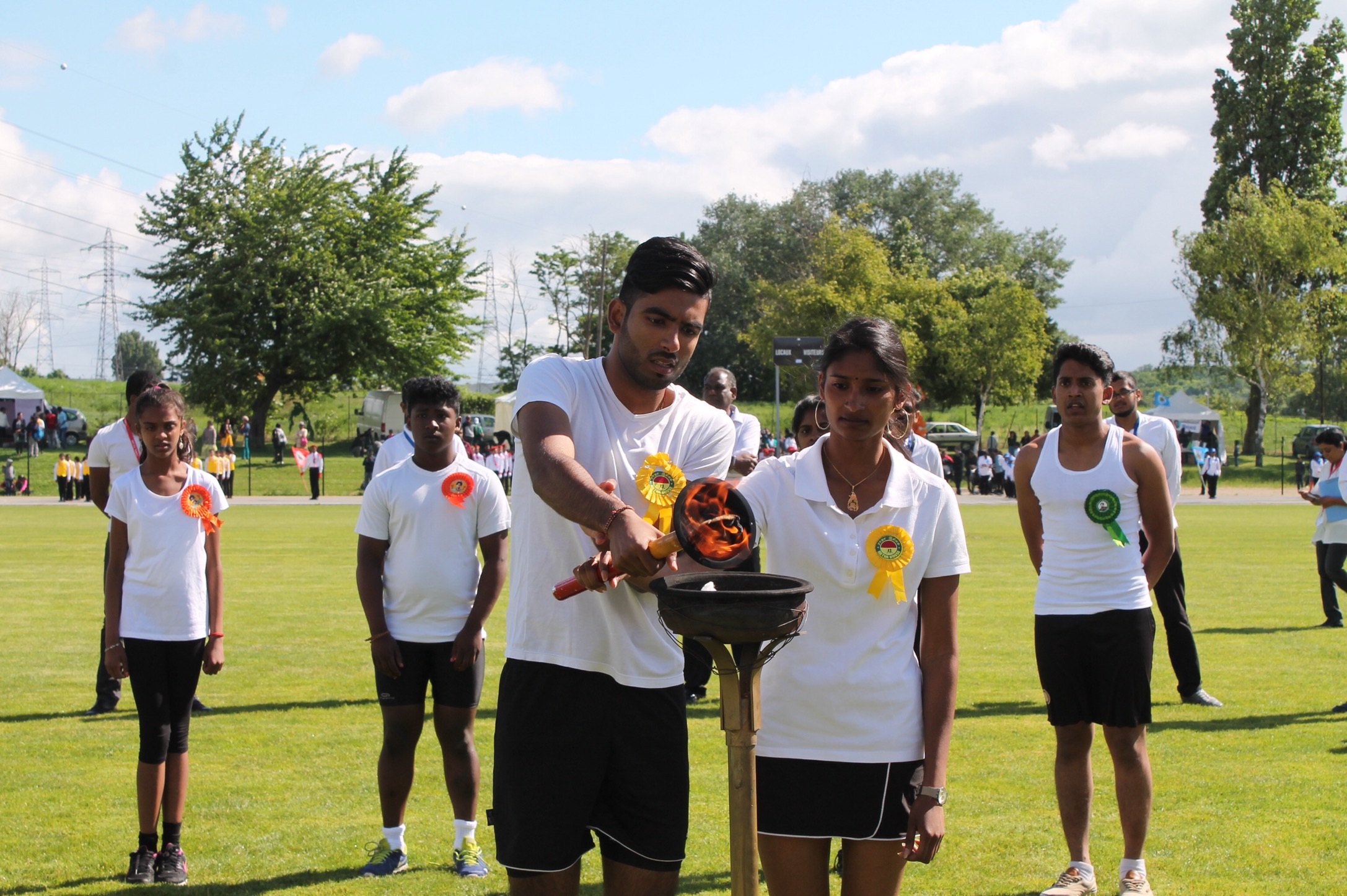 தமிழ்ச்சோலை மாணவ மாணவியர்களின் முழவு இசை அணிவகுப்புடன் விருந்தினர்கள் வரவேற்று மைதானத்திற்கு அழைத்து வரப்பட்டனர் அதனைத் தொடர்ந்து பொதுச்சுடர் ஏற்றி வைக்கப்பட்டது. பொதுச்சுடரை பிரான்சு தமிழர் விளையாட்டுத்துறைப் பொறுப்பாளர் கிருபா அவர்கள் ஏற்றி வைத்தார.; தேசியக் கொடியேற்றலில் பிரஞ்சுக்கொடியை சார்சல் மாநகர முதல்வரும் இன்றைய போட்டியின் பிரதம விருந்தினருமாகிய மதிப்புக்குரிய பிறெஞ்செஸ் புப்போனி அவர்கள் ஏற்றி வைக்க, தமிழீழத்தேசியக்கொடியை பிரான்சு தமிழர் ஒருங்கிணைப்புக்குழு முக்கிய உறுப்பினர் பாலசுந்தரம் அவர்கள் ஏற்றி வைத்திருந்தார்.