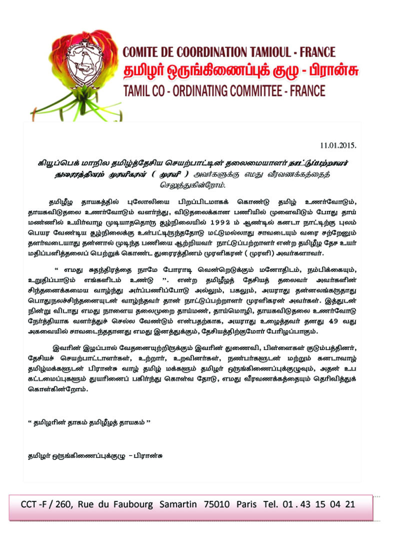 தமிழ்மக்களுடன் பிரான்சு வாழ் தமிழ் மக்களும் தமிழர் ஒருங்கிணைப்புக்குழுவும், அதன் உப