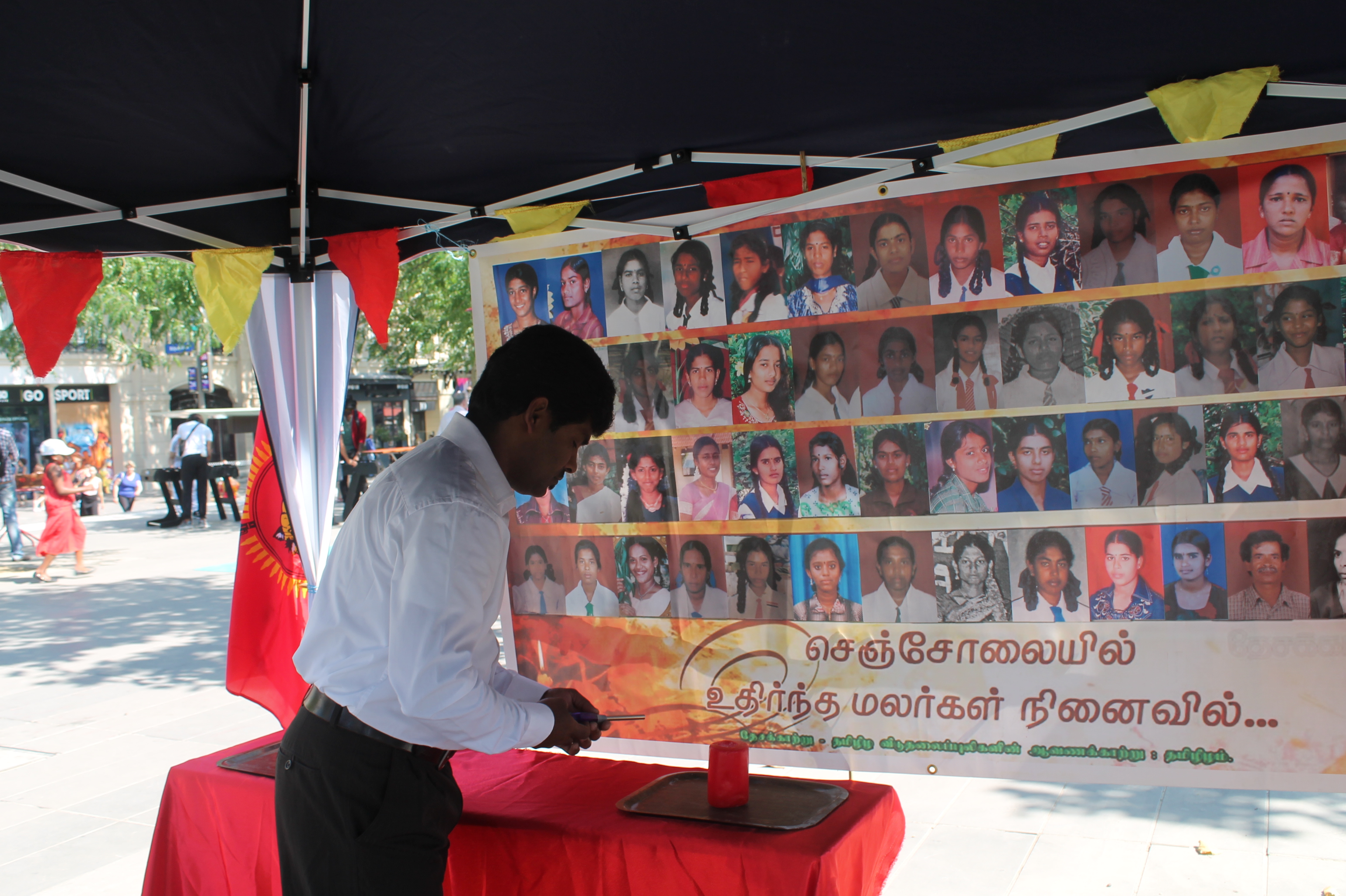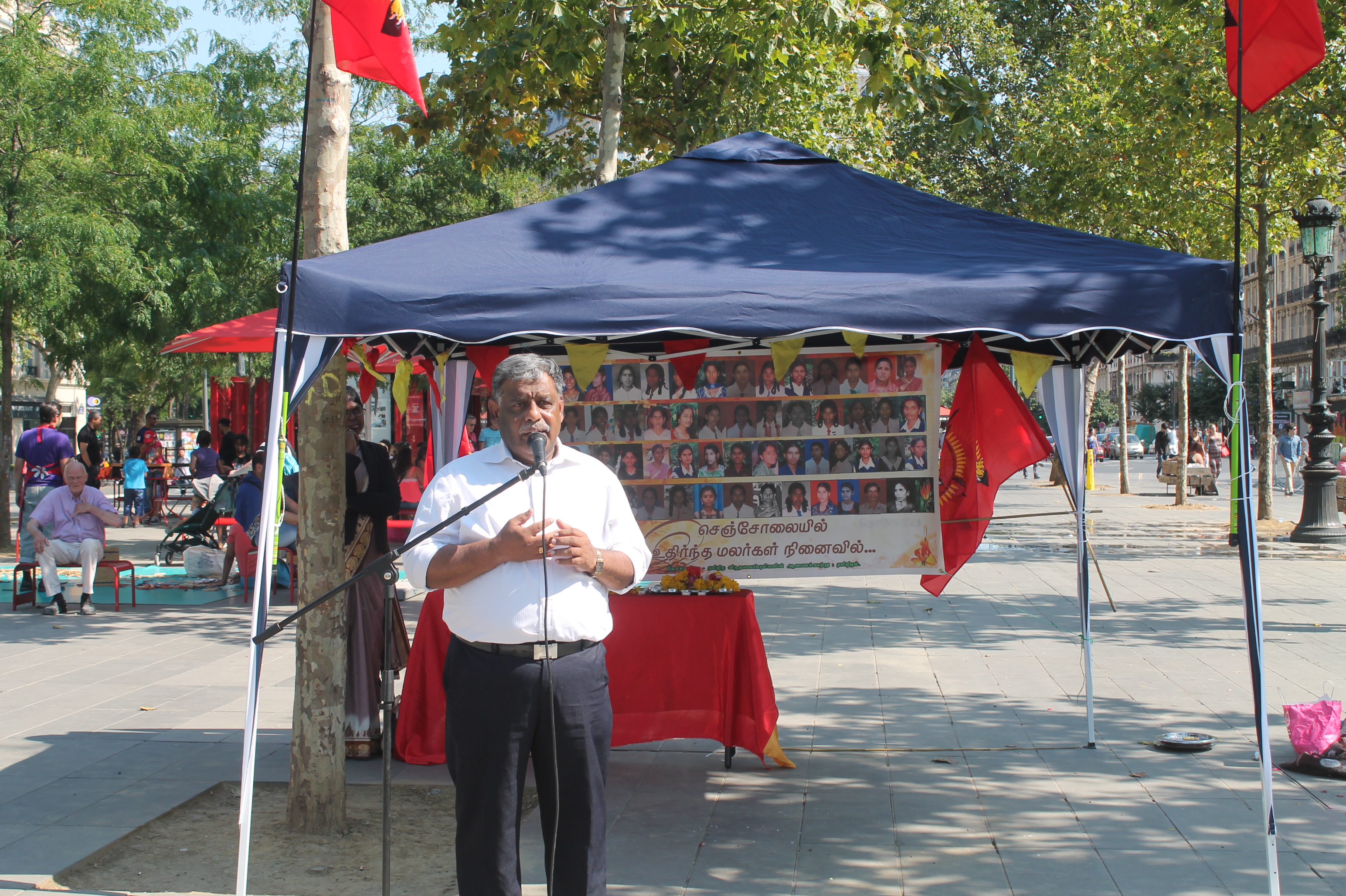 சிறீலங்கா பேரினவாத அரசின் மிலேச்சத்தனமான விமானக்குண்டுவீச்சினால் படுகொலை செய்யப்பட்ட செஞ்சோலை மாணவிகளின் 10 ஆம் ஆண்டு நினைவு வணக்க நிகழ்வு மற்றும் 27.08.2011 அன்று காஞ்சிபுரம் தாலுகா அலுவலகம் முன்பு பேரறிவாளன், முருகன் மற்றும் சாந்தன் ஆகிய மூவருக்கும் வழங்கப்பட்ட தூக்குத் தண்டனையை ரத்துசெய்யக்கோரி தன்னைத் தீயிற்கு ஆகுதியாக்கிய வீரத்தமிழிச்சி தோழர் செங்கொடி அவர்களின் 5ஆம் ஆண்டு நினைவு வணக்கமும் பிரான்சு பாரிசு Republique பகுதியில் இடம்பெற்றது.
