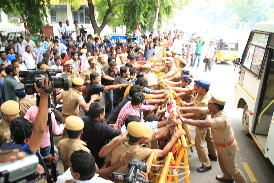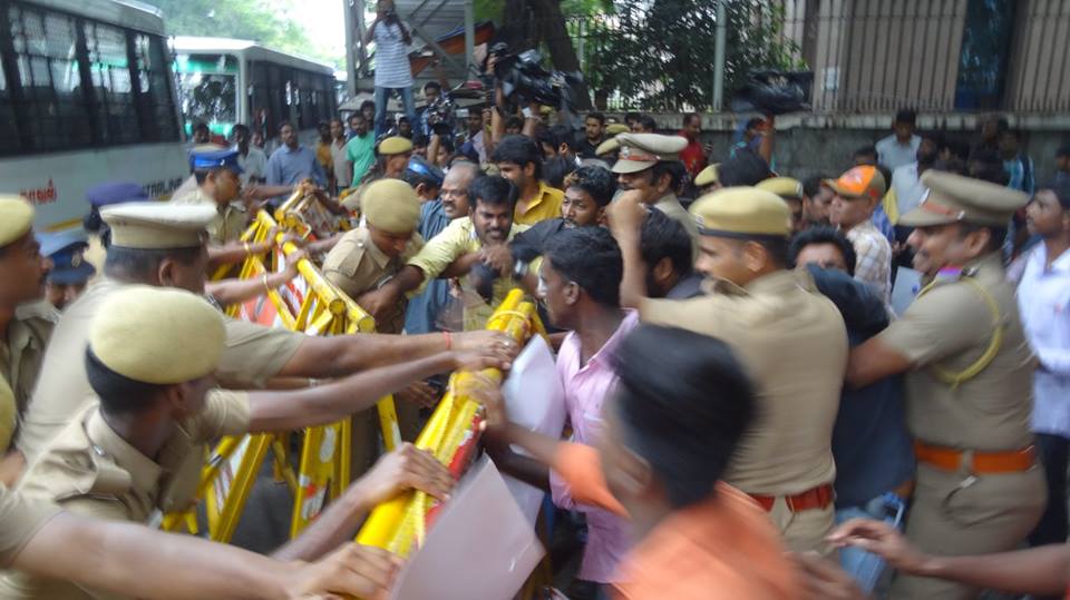 காவிரி நீரை மறுத்து தமிழர்களைத் தாக்கும் கர்நாடக இனவெறி அரசுக்கு ஆதரவாக செயல்படும் இந்திய அரசின் அலுவலகமான சாஸ்திரி பவன் முற்றுகை 14-09-2016 அன்று மே பதினேழு இயக்கத்தால் ஒருங்கிணைத்து நடத்தப்பட்டது.