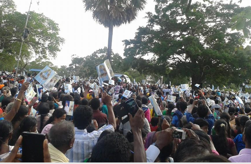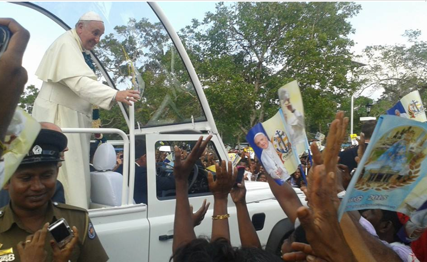 உலங்கு வானூர்தி மூலம் வடக்கின் மடு தேவாலயத்திற்கு வருகைதந்த புனித பாப்பரசர் பெருந்திரளான மக்கள் மத்தியில் வாகனத்தில் பவனி வந்தார்.