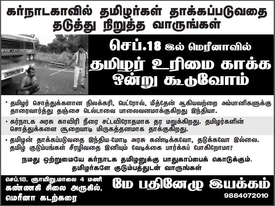 கர்நாடகாவில் தமிழர்கள் தாக்கப்படுவதைத் தடுத்து நிறுத்த வாருங்கள்.