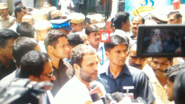 மருத்துவமனைக்குள் சென்ற ராகுல் காந்தி சுமார் 45 நிமிடங்களுக்குப் பிறகு வெளியில் வந்தார். அங்கு செய்தியாளர்களிடம் பேசிய அவர், தன்னுடைய ஆதரவையும் காங்கிரஸ் கட்சித் தலைவரின் ஆதரவையும் முதல்வருக்குத் தெரிவிக்கவே வந்ததாகக் கூறினார்.